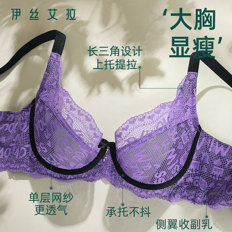 伊丝艾拉法式 性感蕾丝内衣薄杯大胸有型显小上托侧收透气文胸女