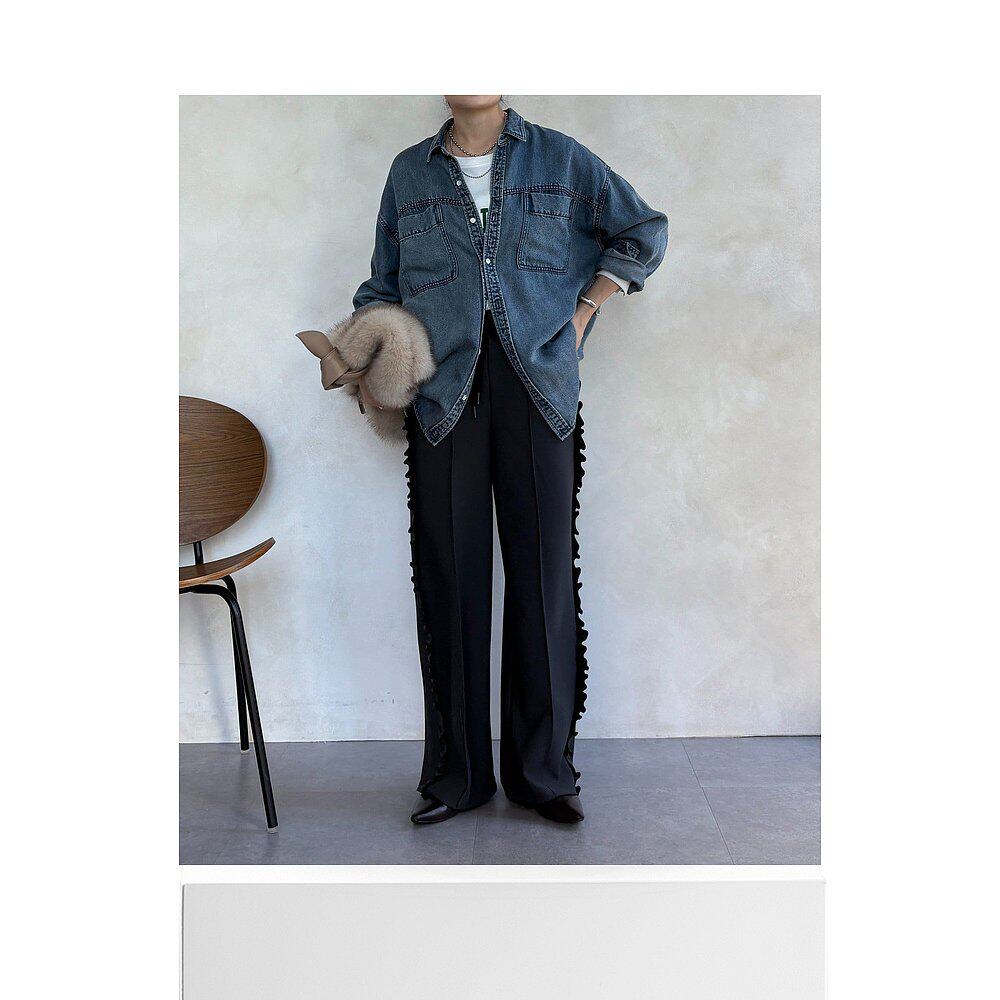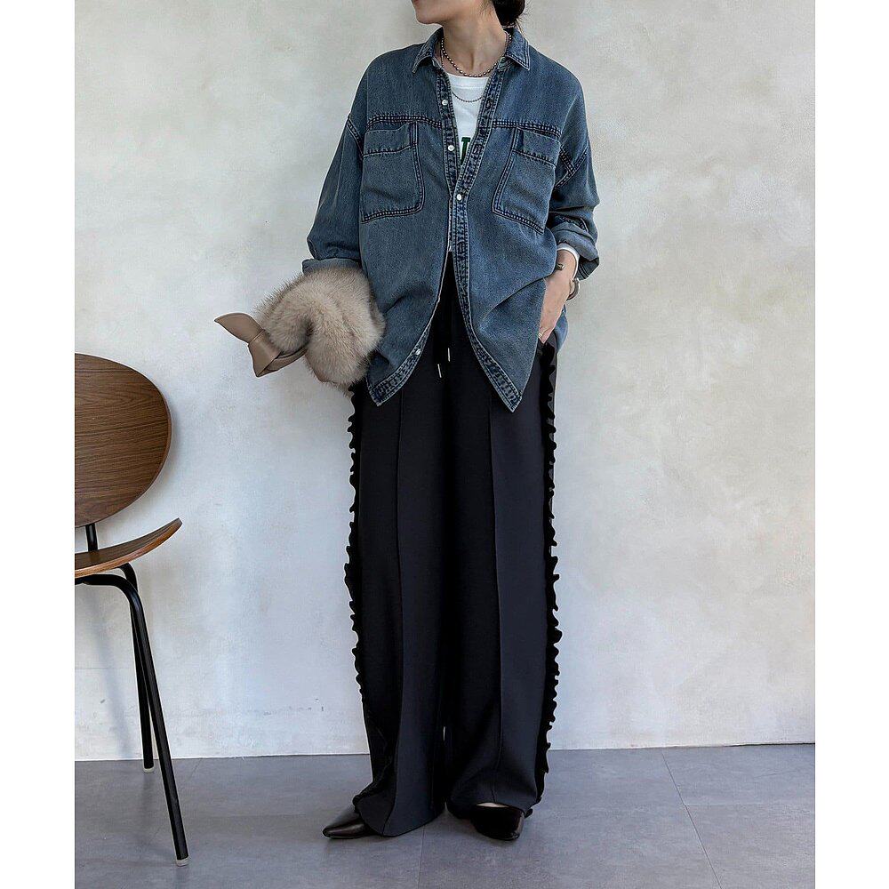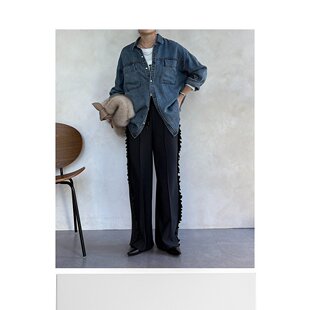 1h可退 DDZ10523 日本直邮DouDou女士上品乔赛特侧边荷叶边阔腿裤