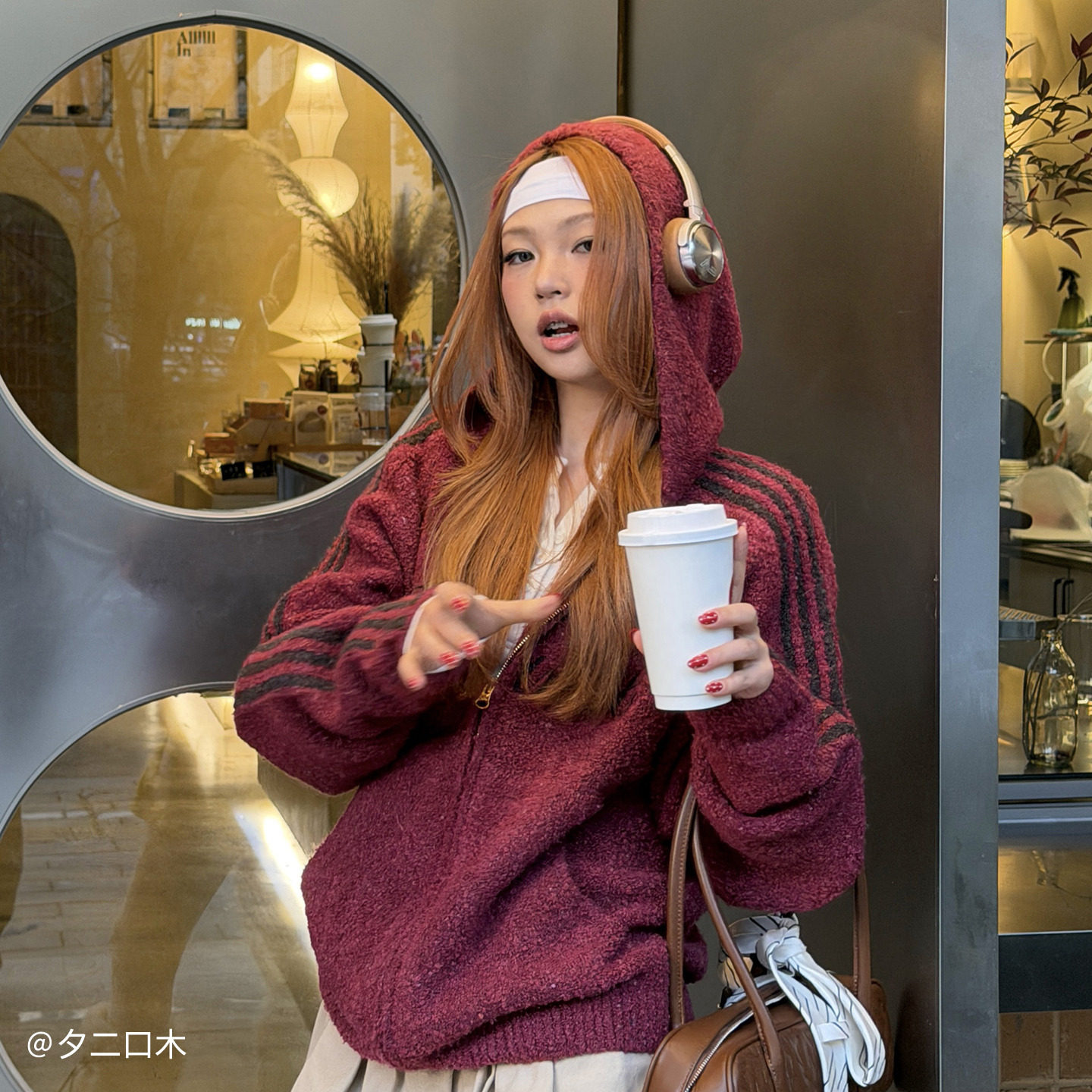 明星同款 针织绒面休闲宽松夹克外套男女adidas阿迪达斯官方三叶草