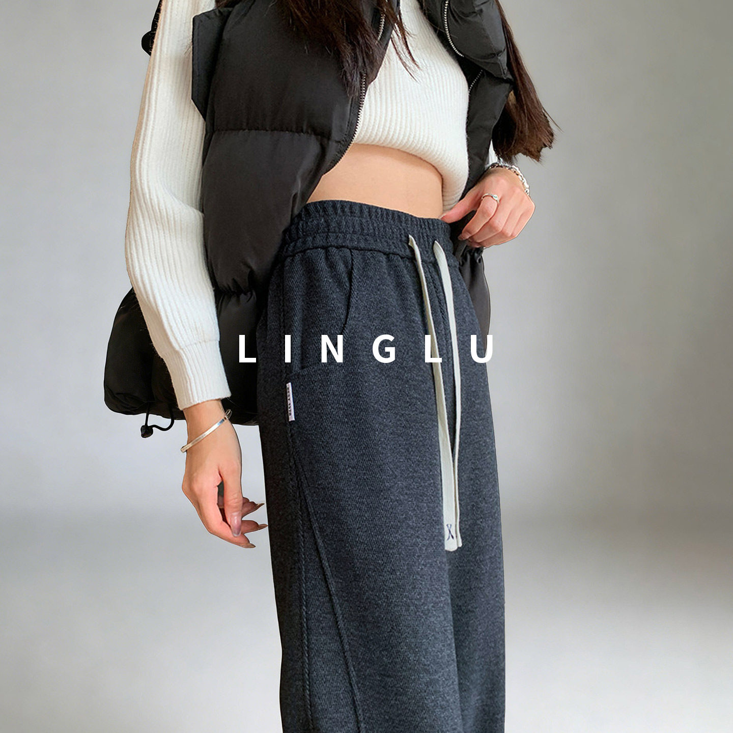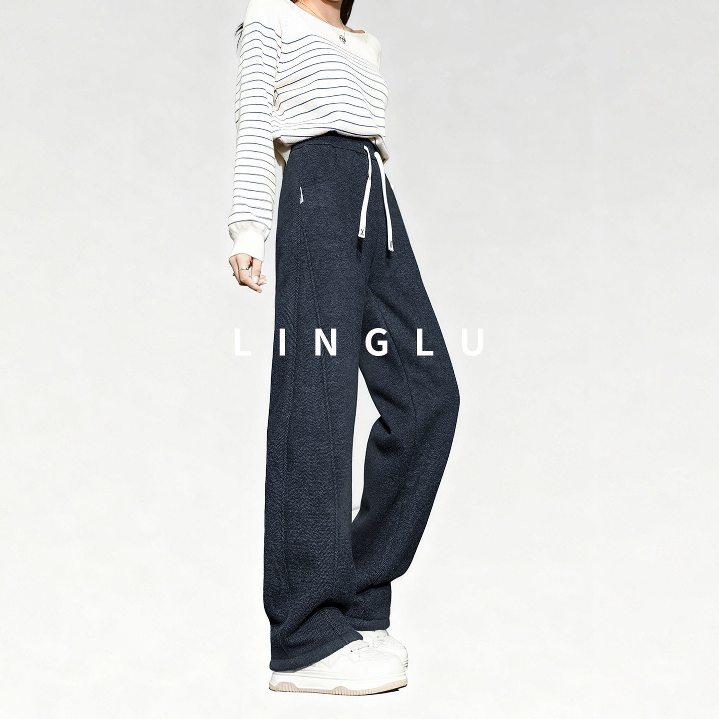 深灰色垂感直筒休闲裤 女高腰窄版 人字纹阔腿裤 春卫裤 CHAO显瘦
