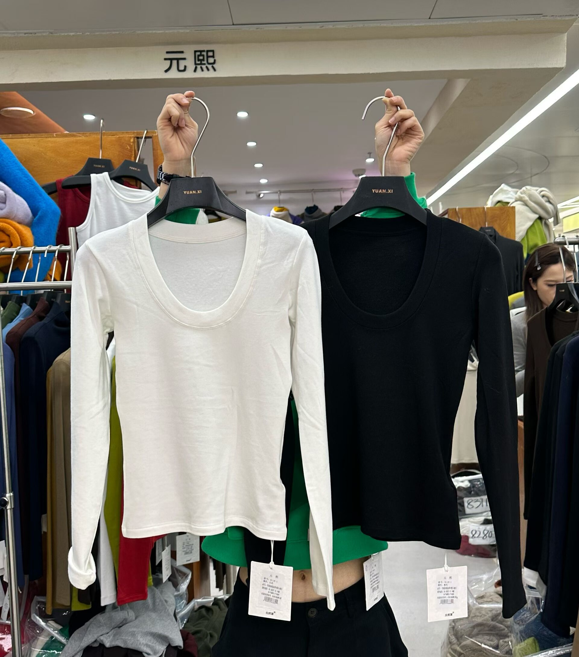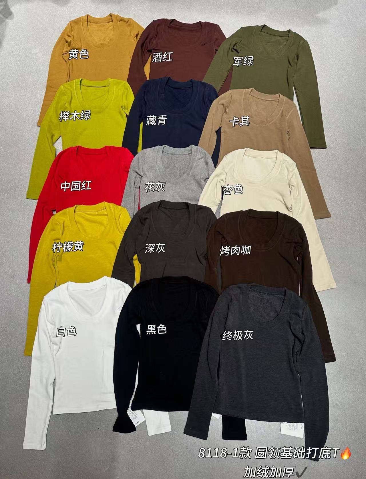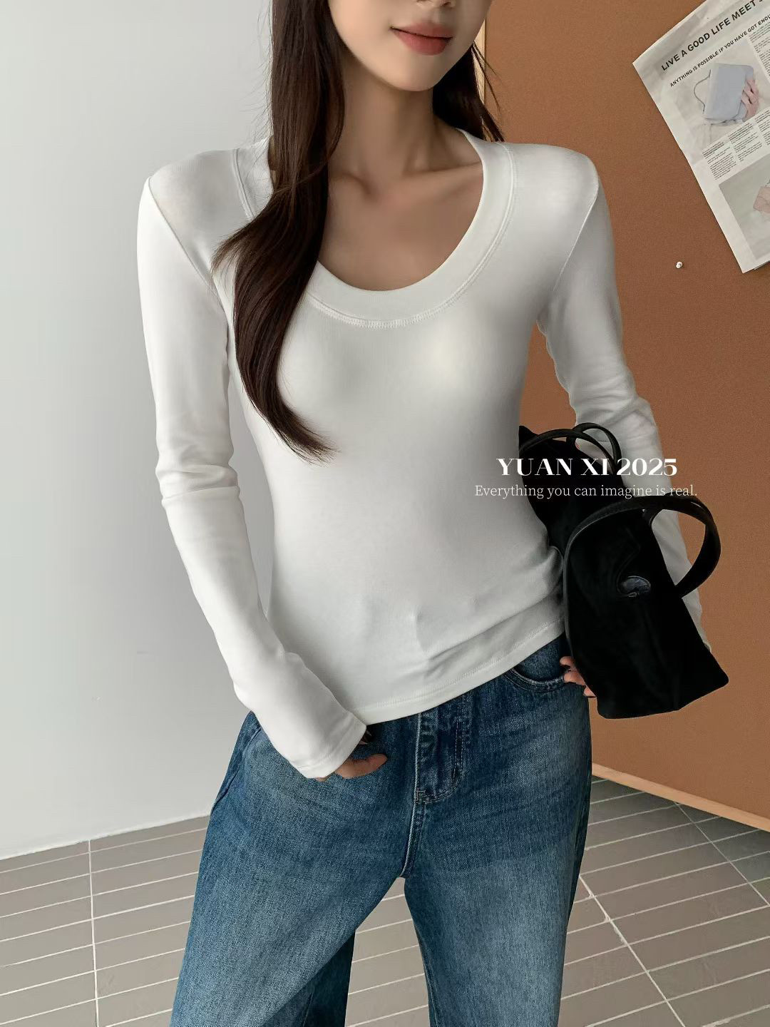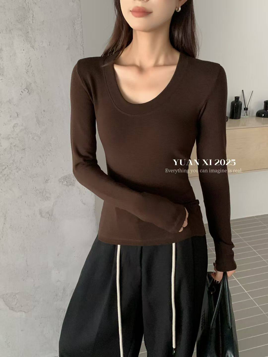 熙8118 显瘦百搭打底衫 1秋冬季 T恤女修身 上衣 U领加绒长袖 yuanxi元