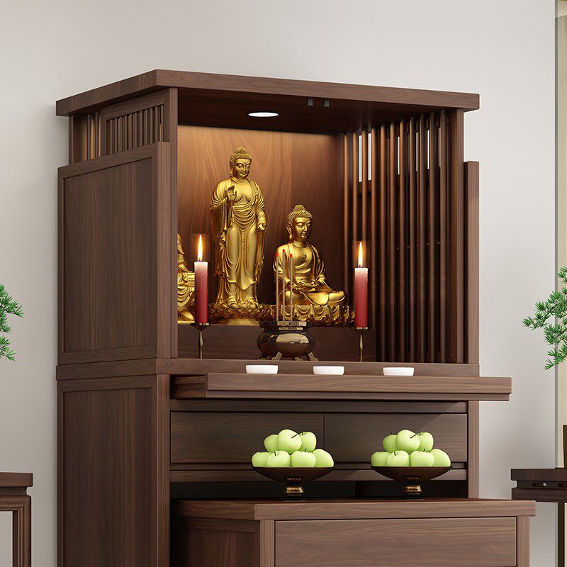 新中式 神龛架佛柜家用简约供奉桌佛台财神柜佛柜 财神爷供台壁挂式