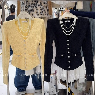 半高领设计感针织开衫 新款 洋气紫色立领方扣毛衣女2025年春季 韩版