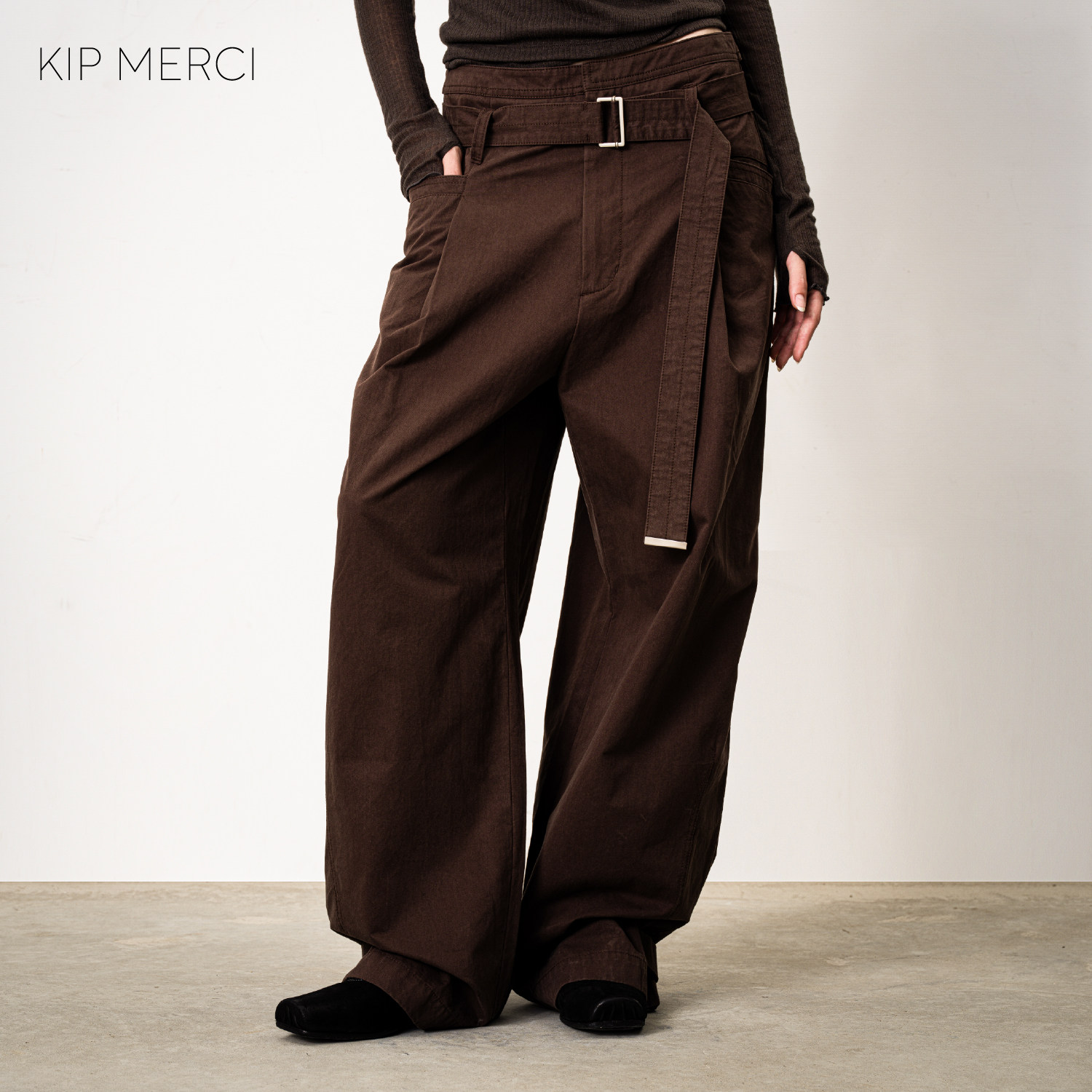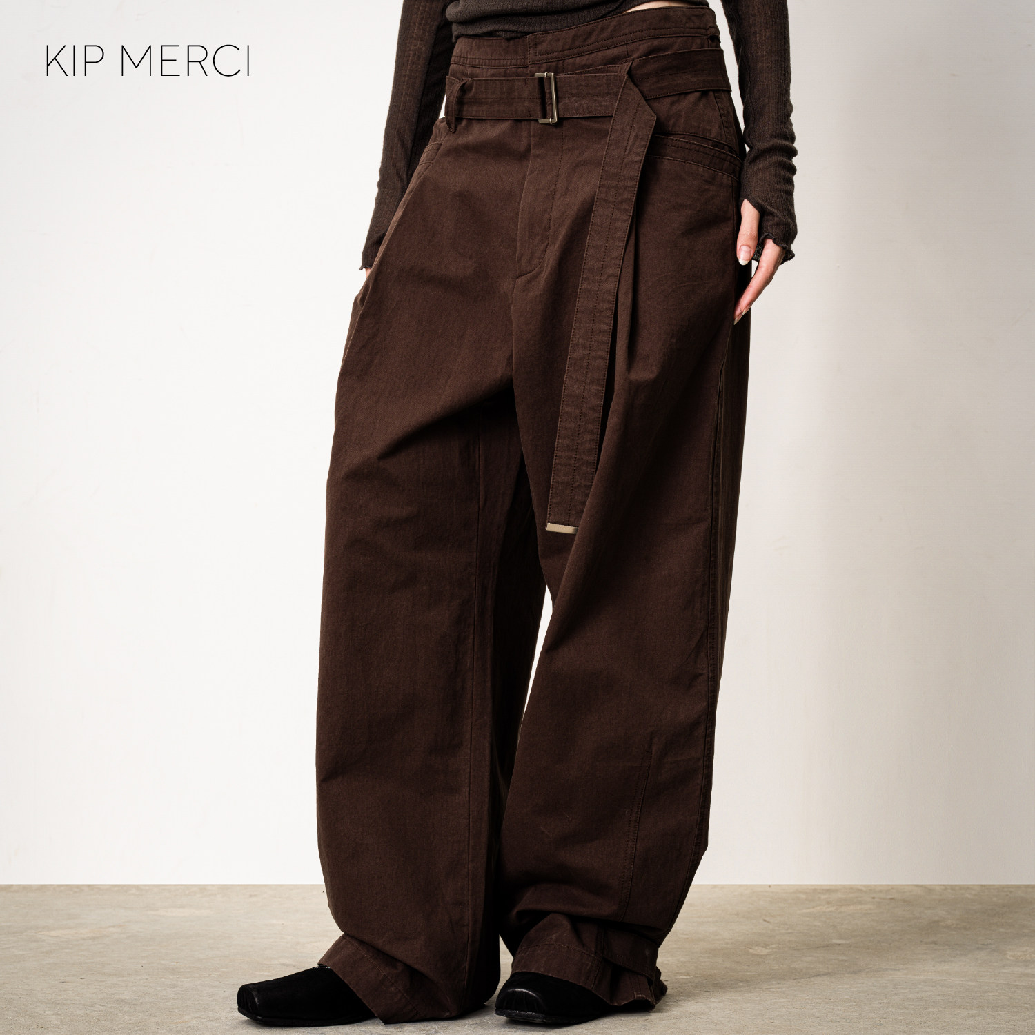 MERCI 拖地裤 25AW秋冬新款 高腰阔腿工装 复古百搭腰带休闲长裤 KIP