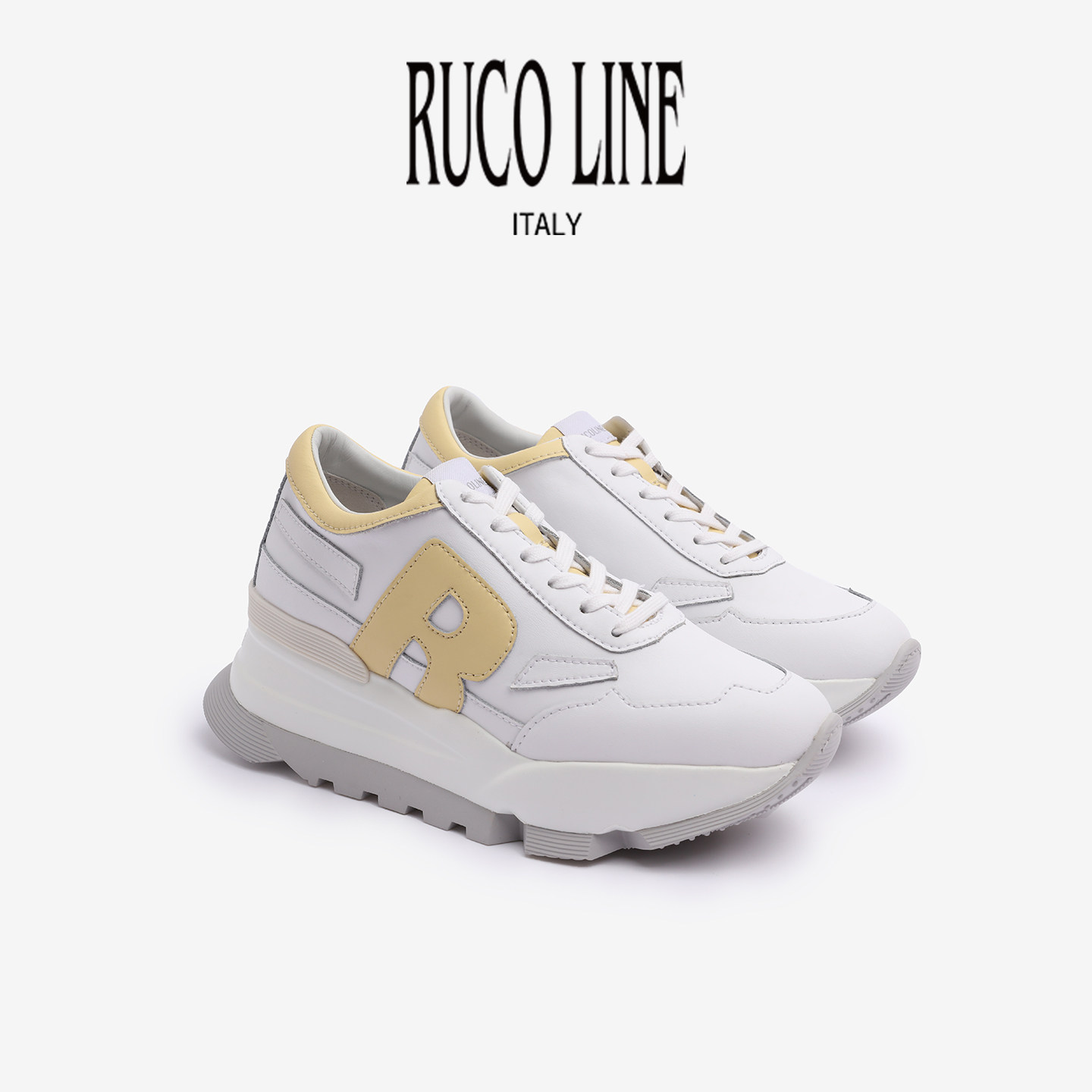 品牌经典 休闲厚底7cm增高鞋 款 Line如卡莱 牛皮革小白鞋 Ruco