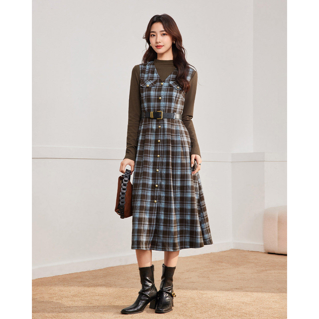 成熟优雅气质感受邀显瘦格子里外套裙 韩版 IEF 爱依服2025秋冬新款