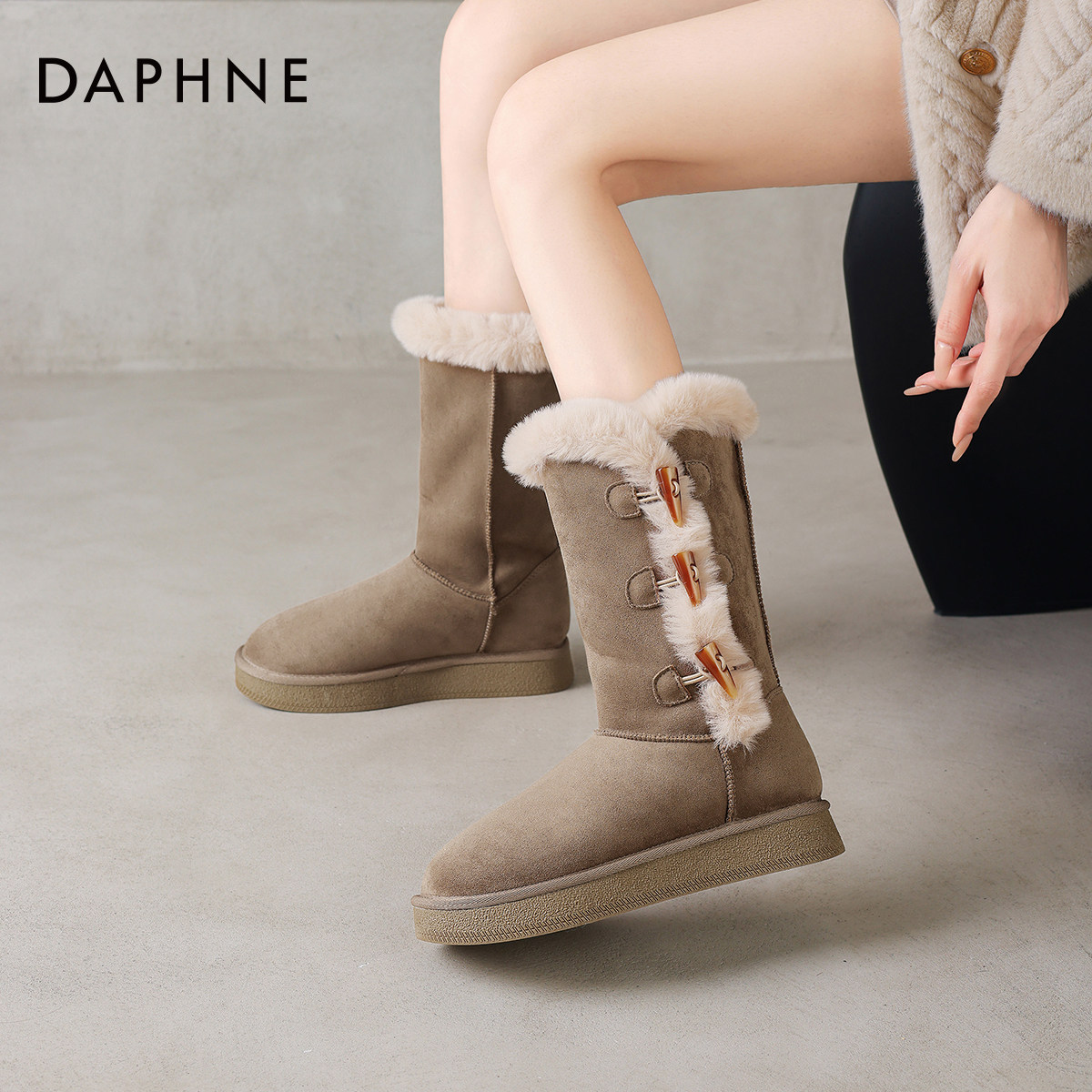 长筒东北保暖棉鞋 冬季 女款 达芙妮中筒高筒加绒加厚雪地靴2026新款