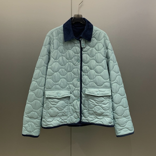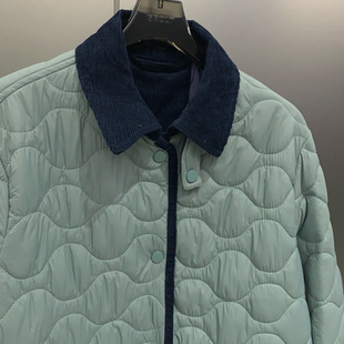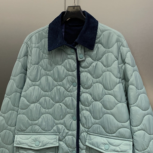 W7070 葫芦格绗棉翻领夹克外套女 高级显白 蒂芙尼蓝