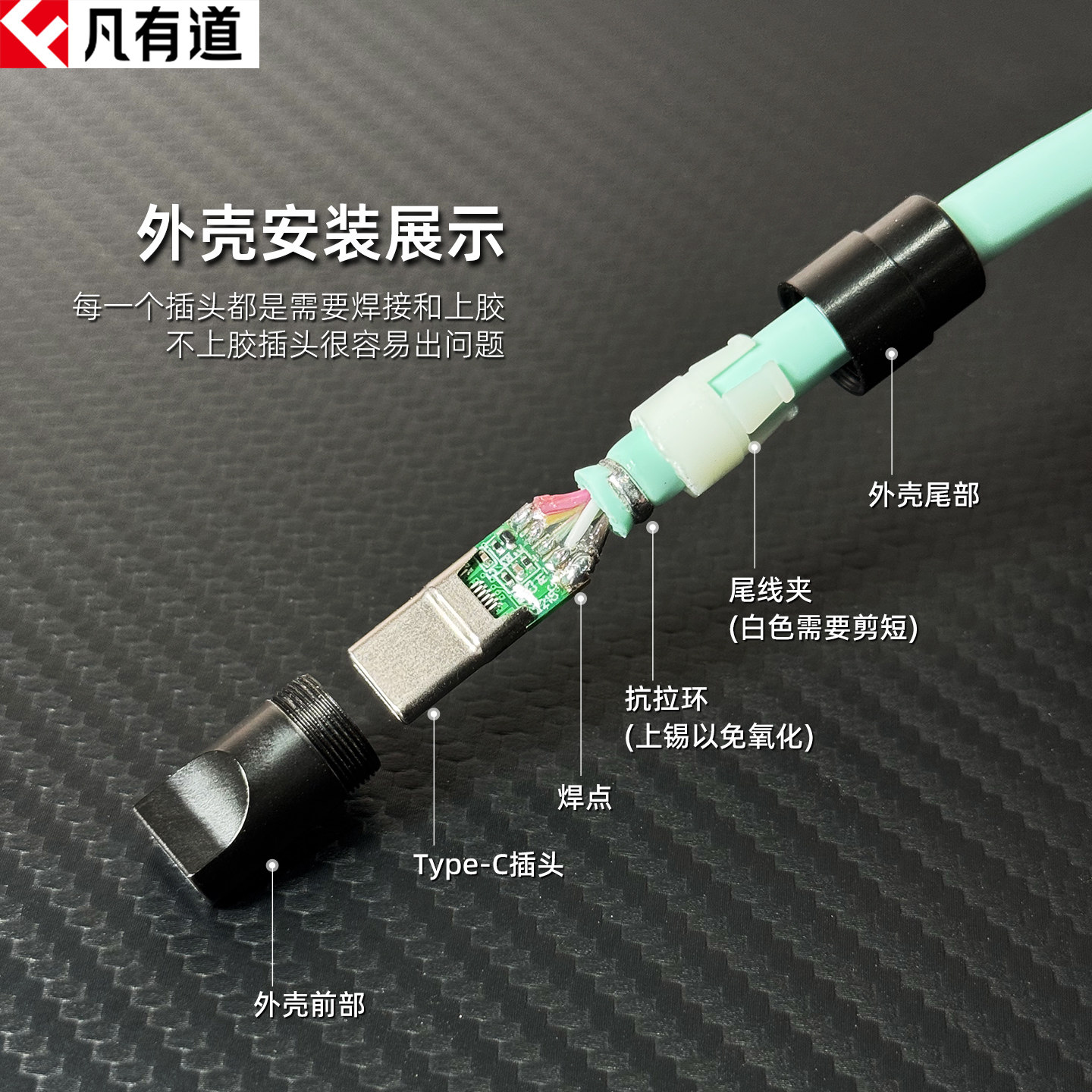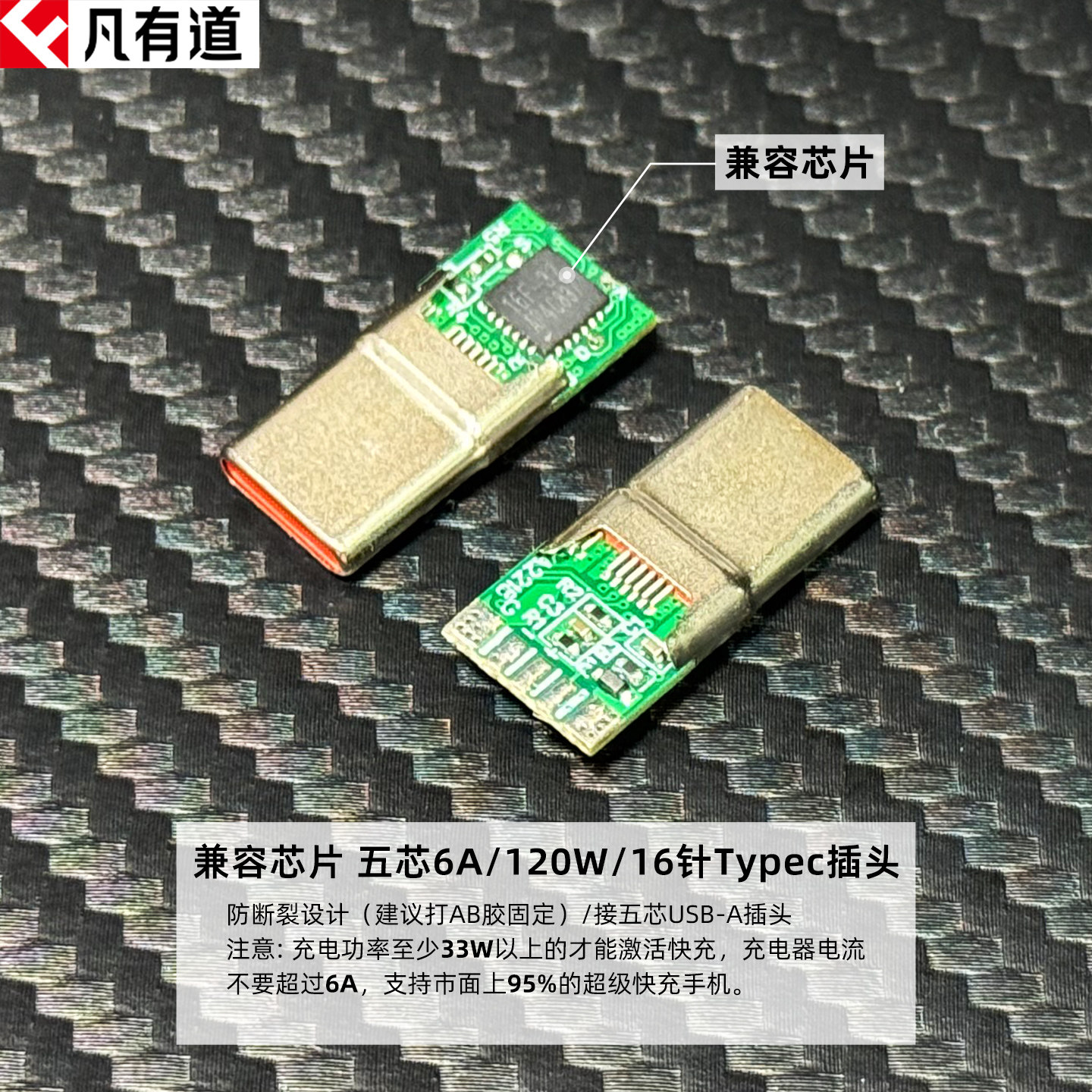 凡有道diy数据线配件16针防断裂A C五芯6A快充头适用于苹果151617手机华为OPPO小米120W兼容vivo芯片金属外壳