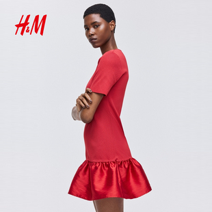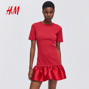 可机洗羊毛修身 连衣裙 大摆裙跨年氛围感穿搭新年圣诞红色长袖