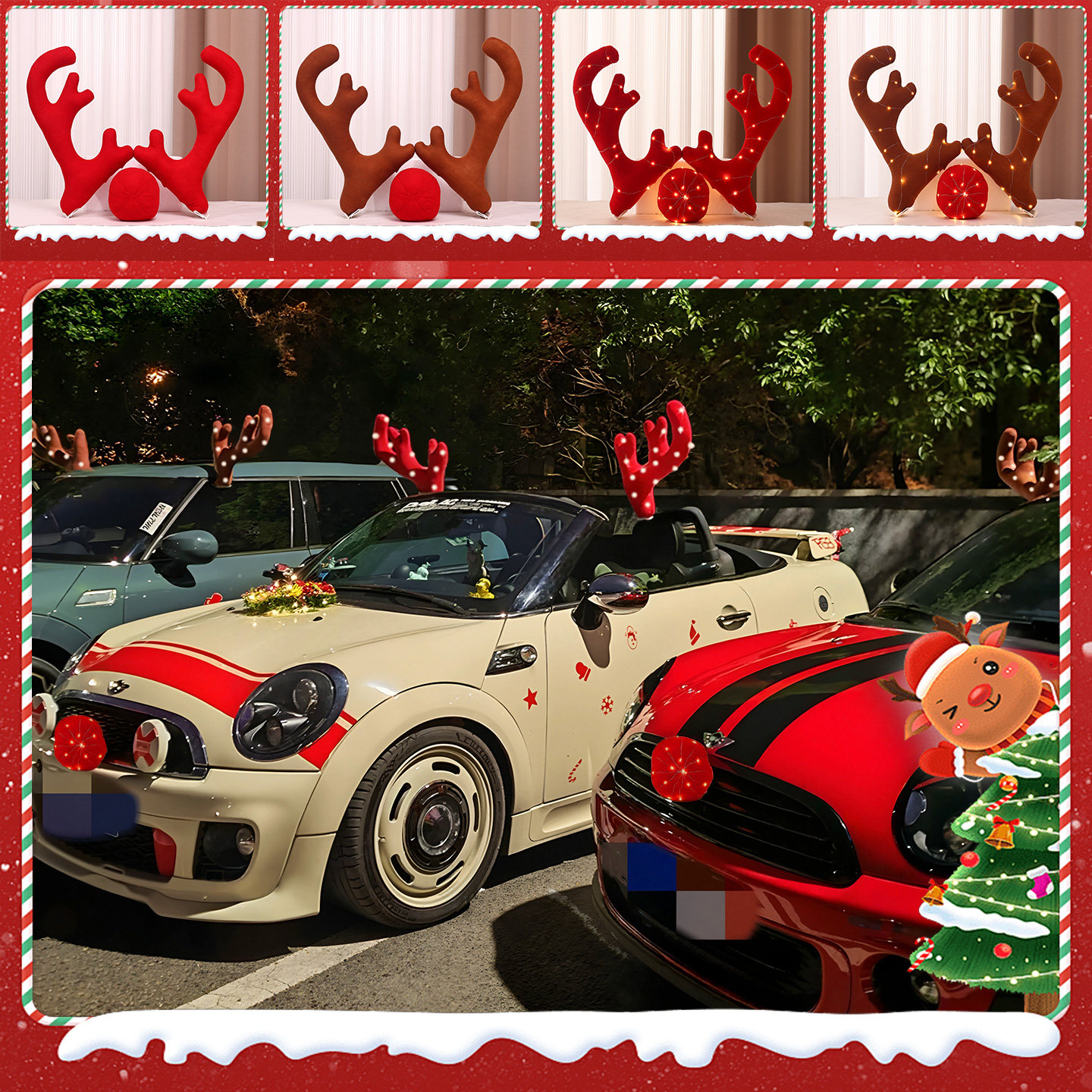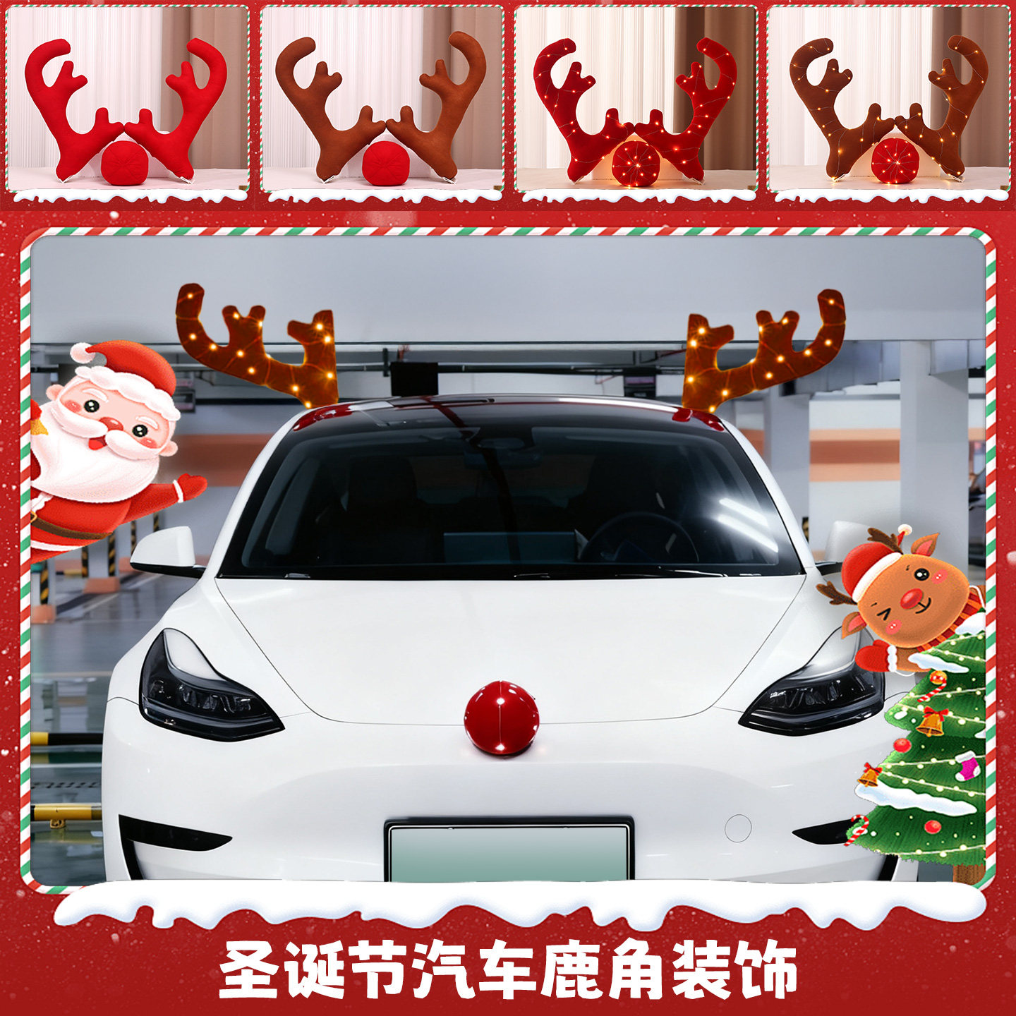 圣诞节汽车装 扮圣诞树4S店展厅发光汽车摆件 饰鹿角平安夜车顶装