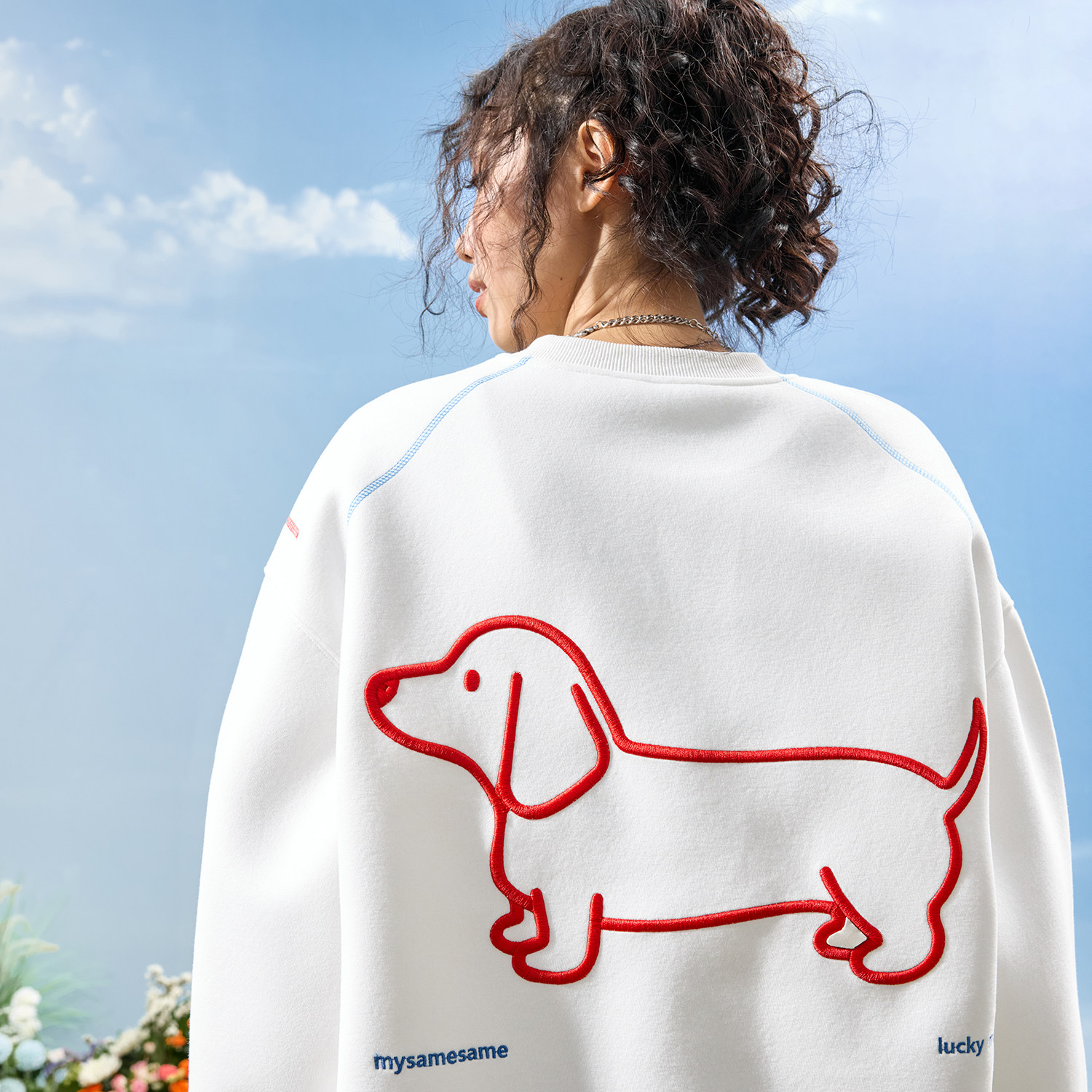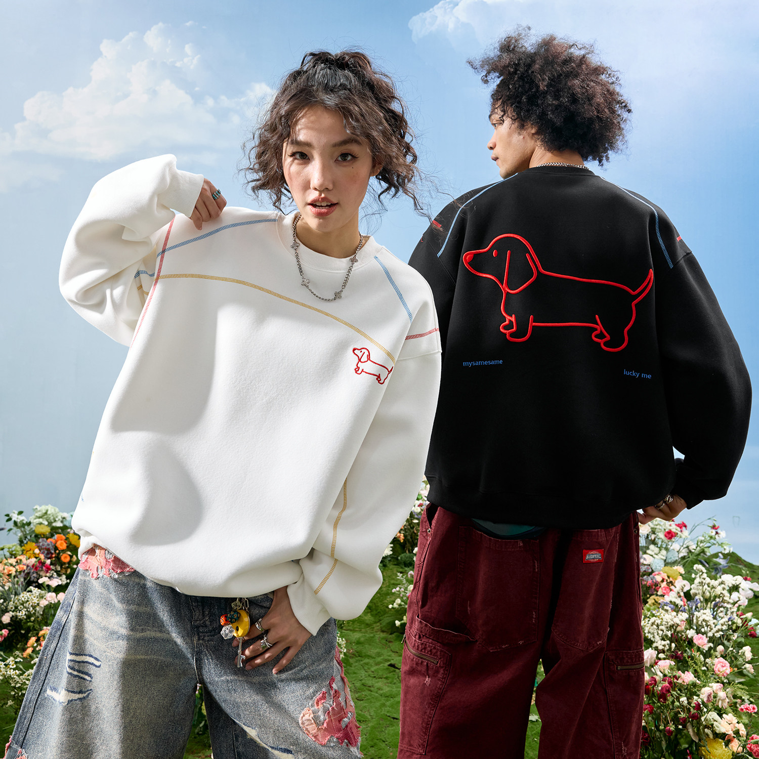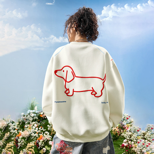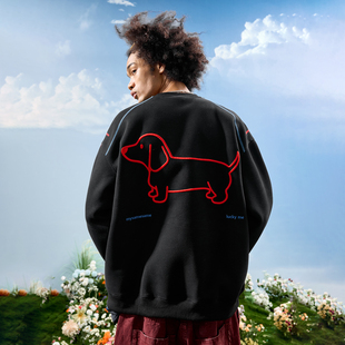 GUUKA&matsui联名小狗重磅圆领卫衣男款 纯棉情侣加绒落肩上衣宽松