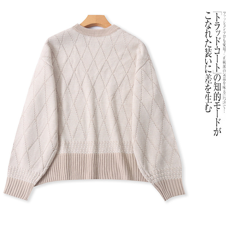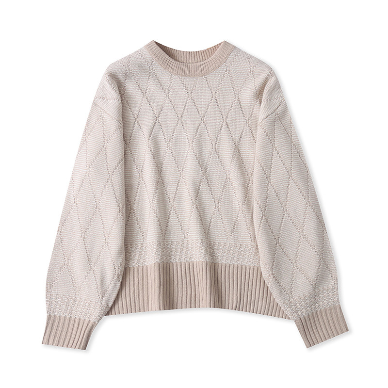 C0152外贸日单女生毛衣秋冬新款 圆领套头拼色宽松休闲百搭针织衫