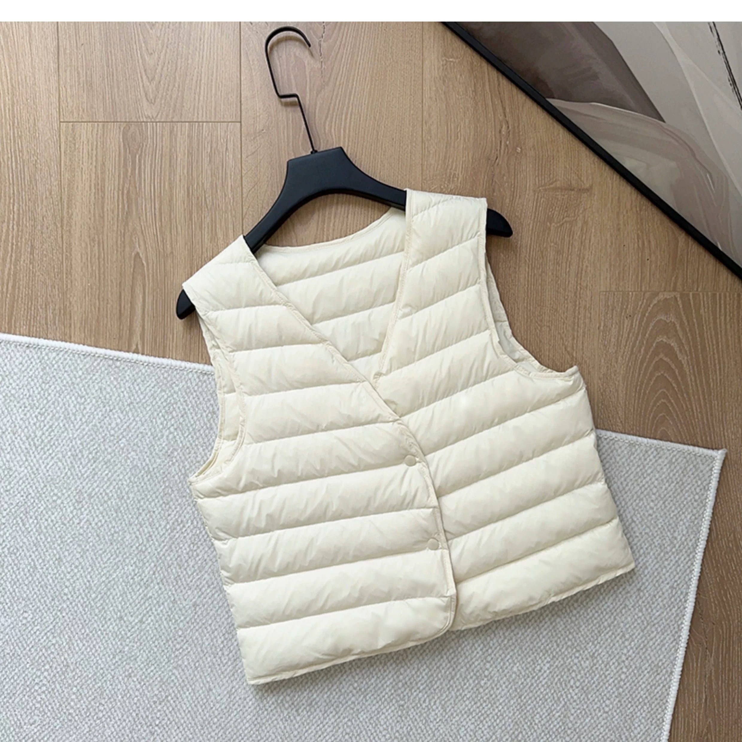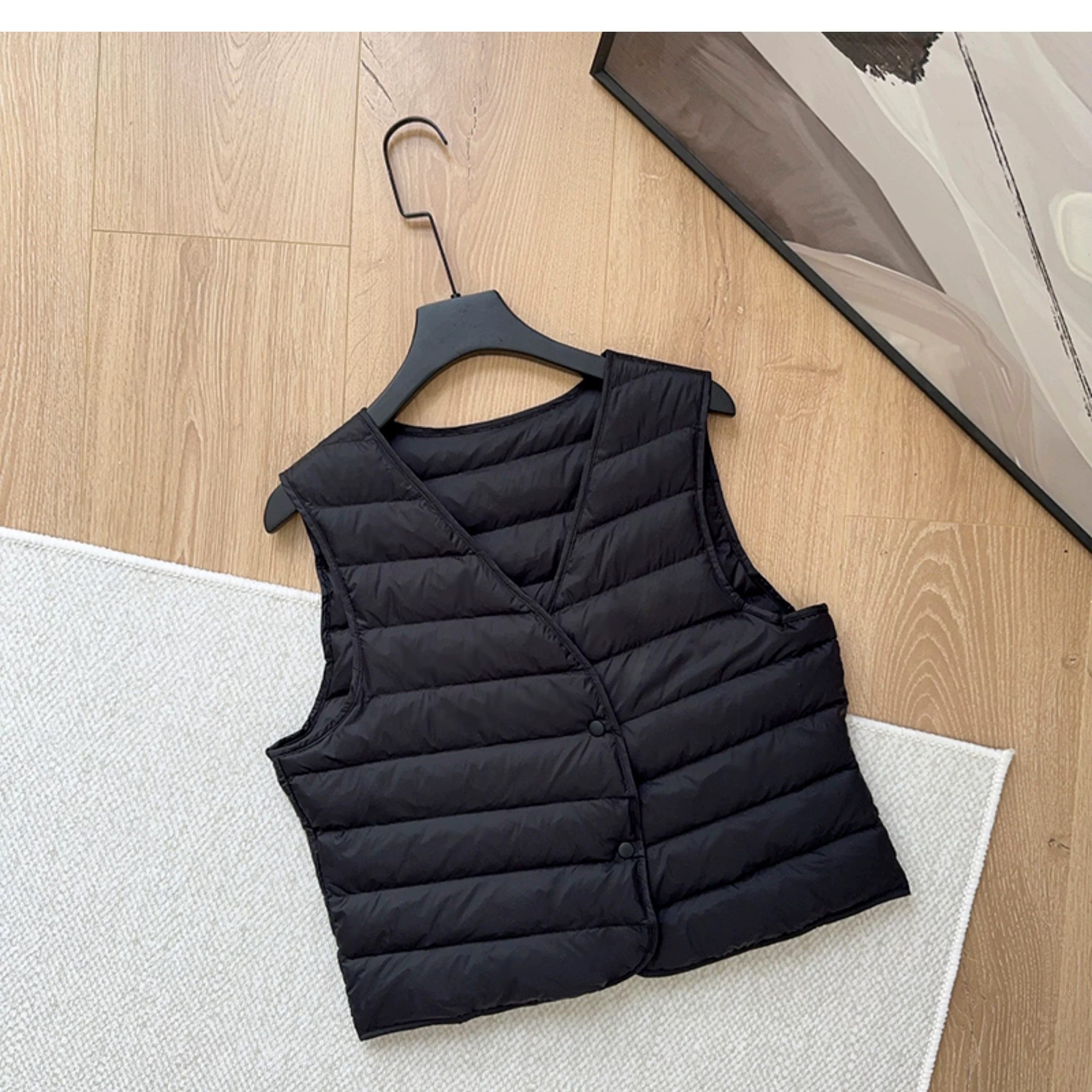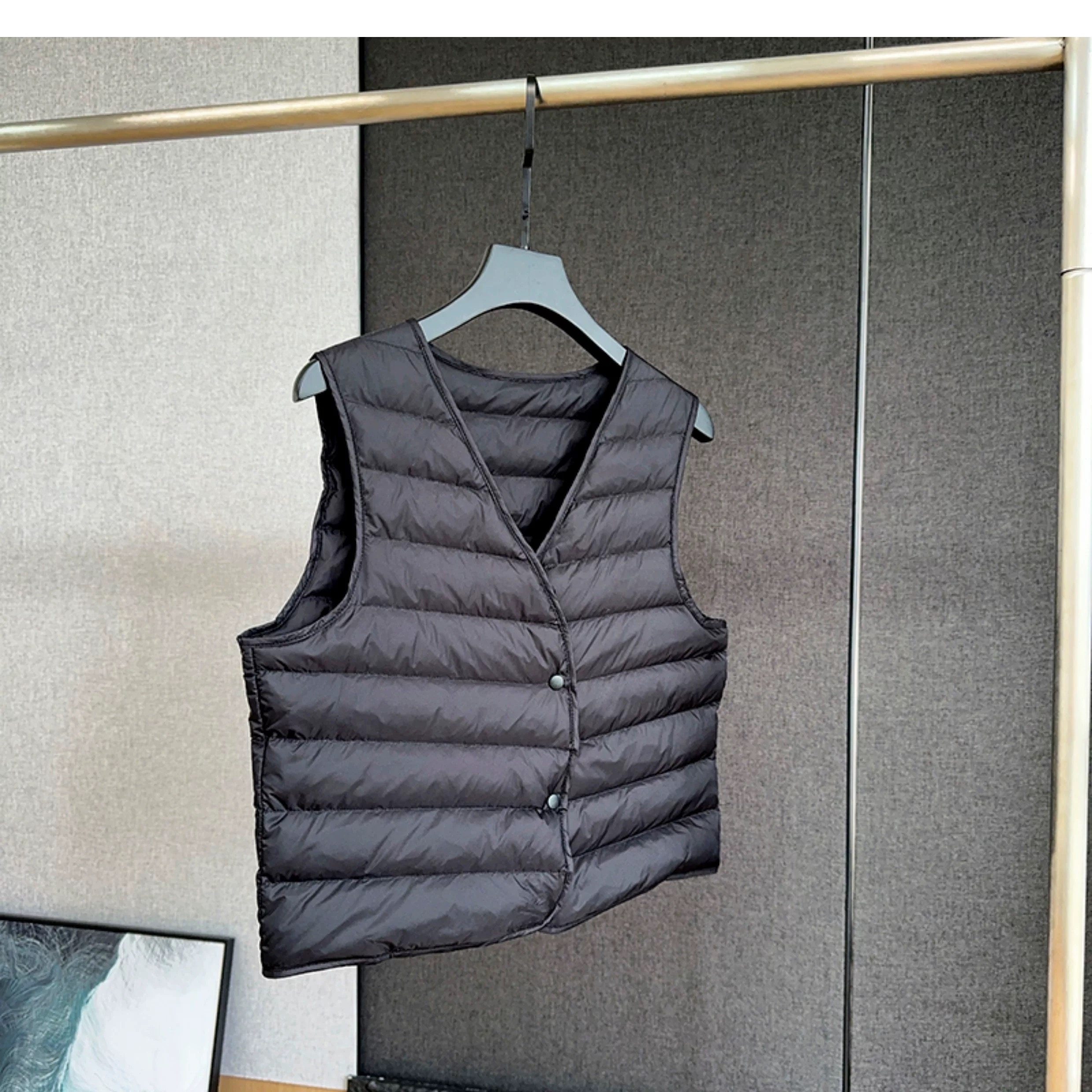 高品质 马甲轻薄保暖羽绒背心内穿百搭内胆外穿女 V领90白鹅绒大码