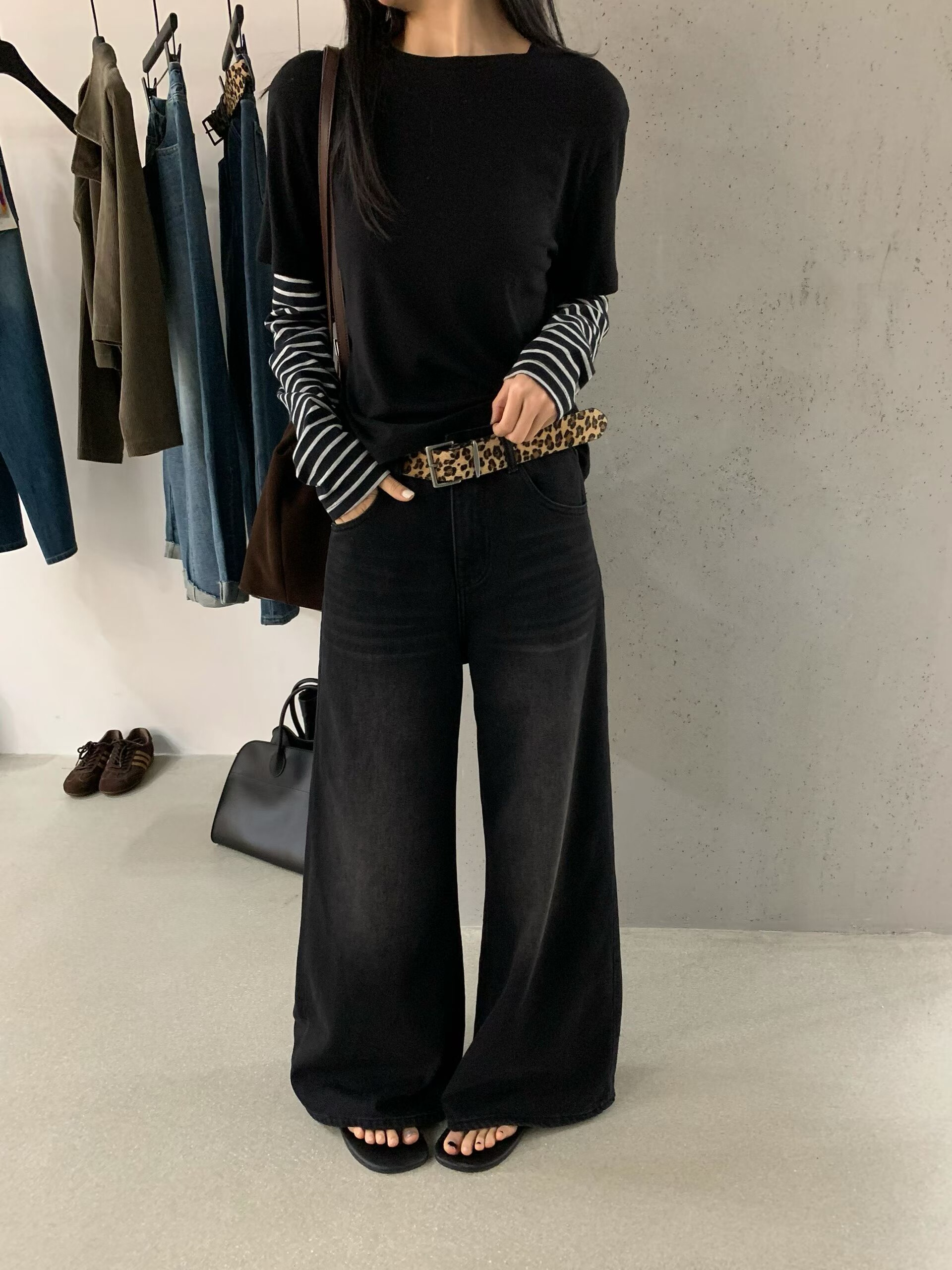 6130 女百搭垂感牛仔长裤 韩国AP时尚 高级感宽松显瘦高腰直筒阔腿裤