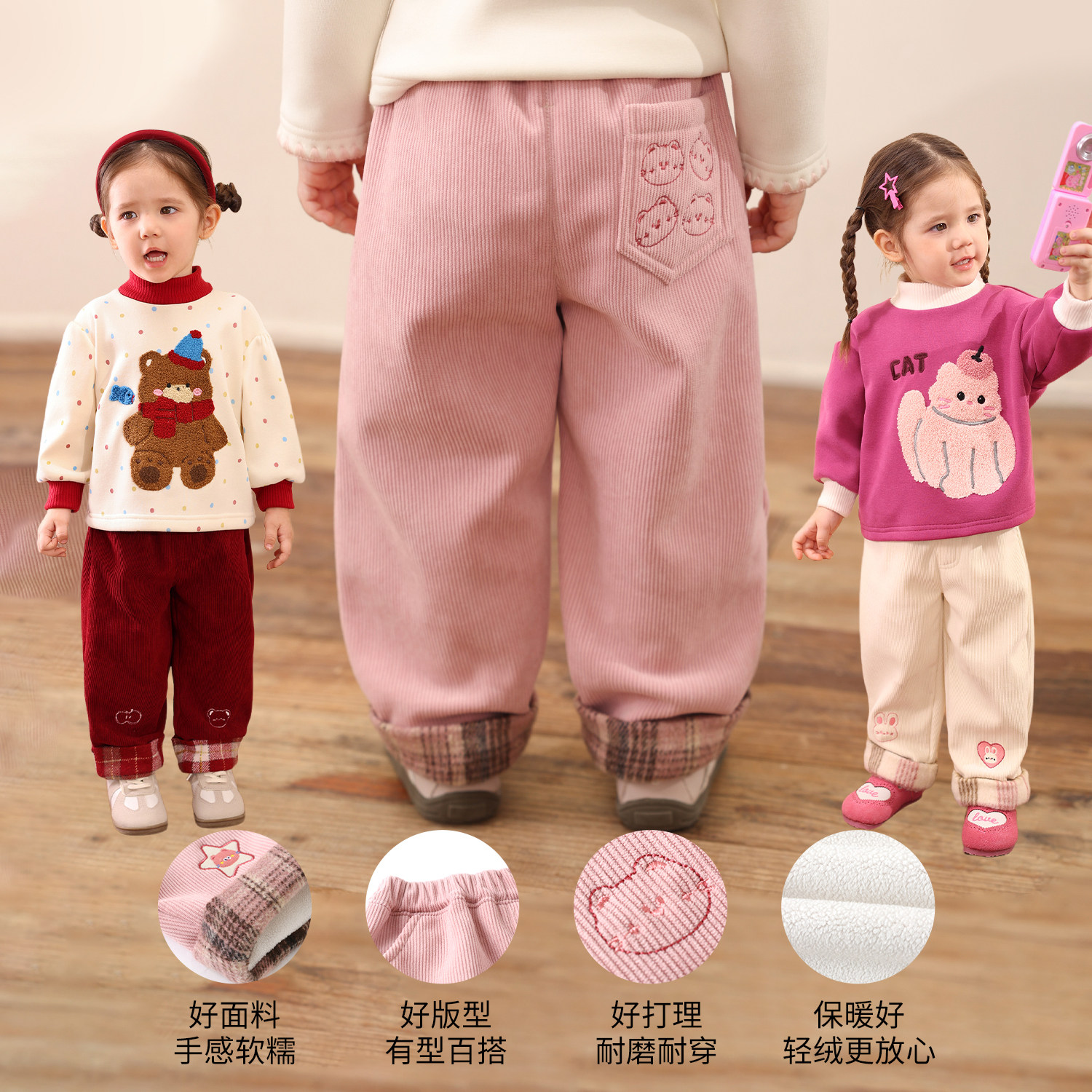 婴儿加绒加厚保暖直筒裤 小o爸女婴童 新款 2025冬季 女宝宝灯芯绒裤