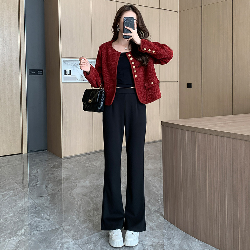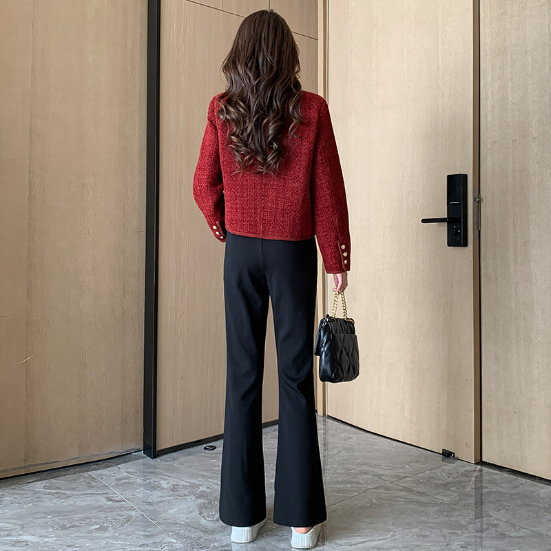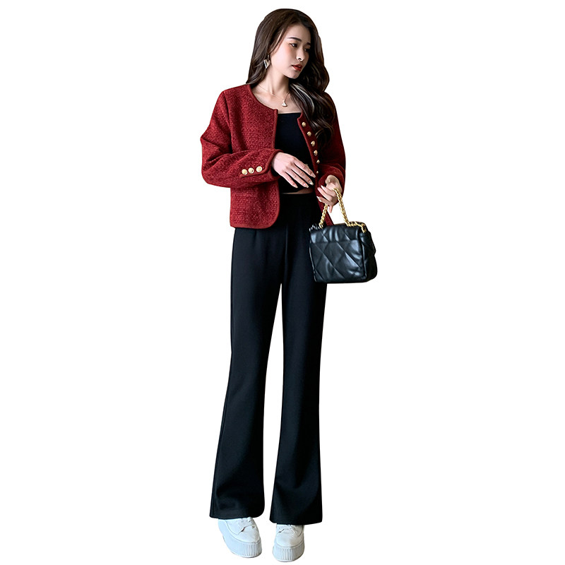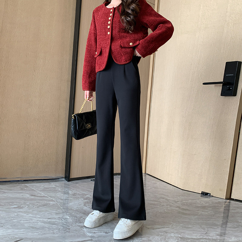 155直筒高腰垂感直筒裤 秋冬新款 加绒休闲微喇裤 150小个子XXS小码
