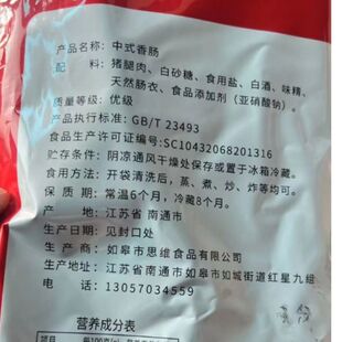 如皋香肠特产纯肉正宗传统手工肉肠咸甜农家真空腊肠500克特色