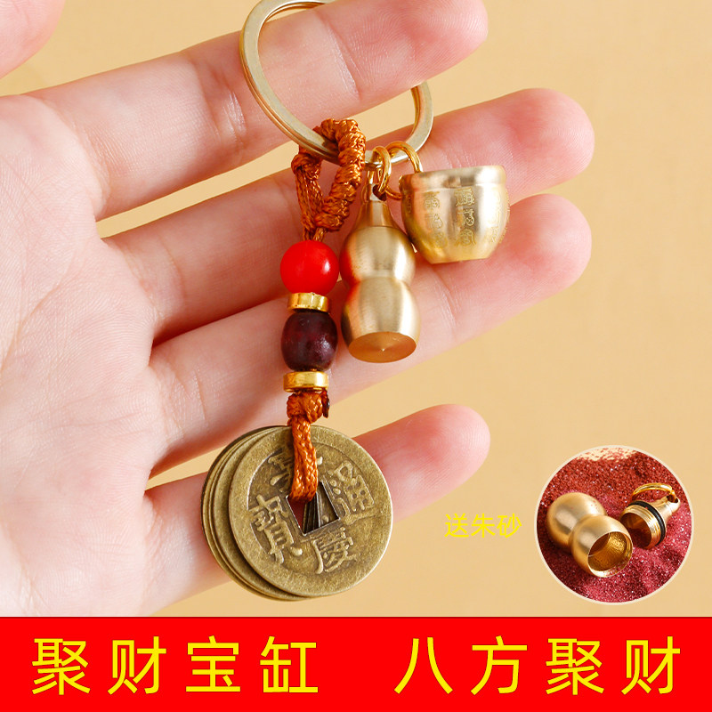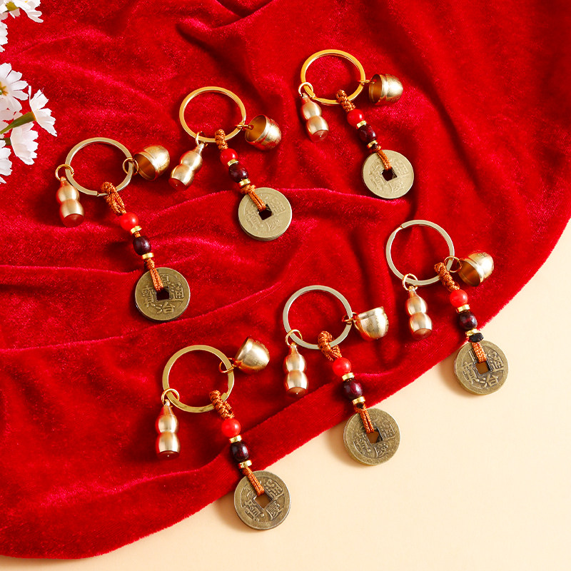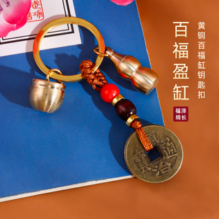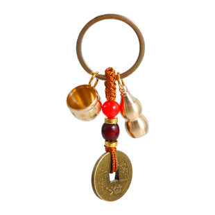 沙金黄铜葫芦钥匙扣平安福禄财神好事发生汽车钥匙扣挂饰女礼物