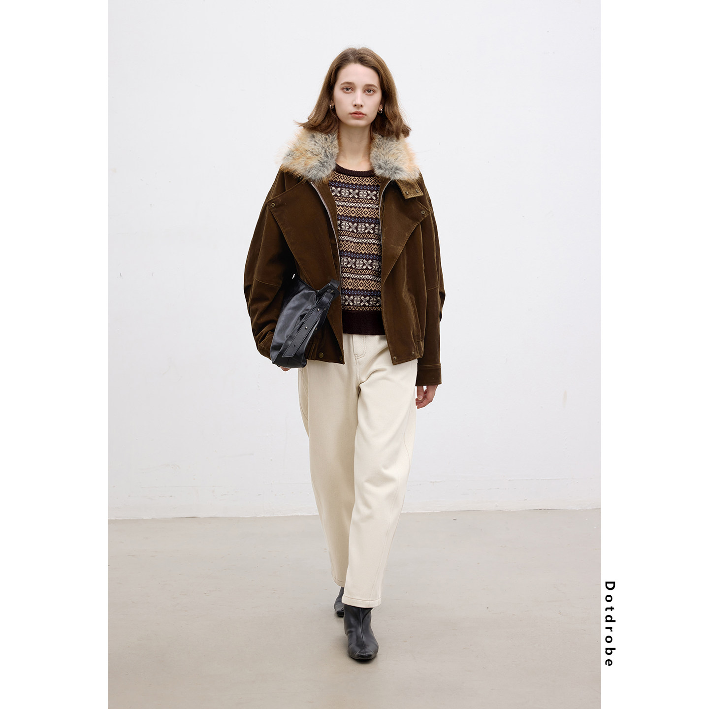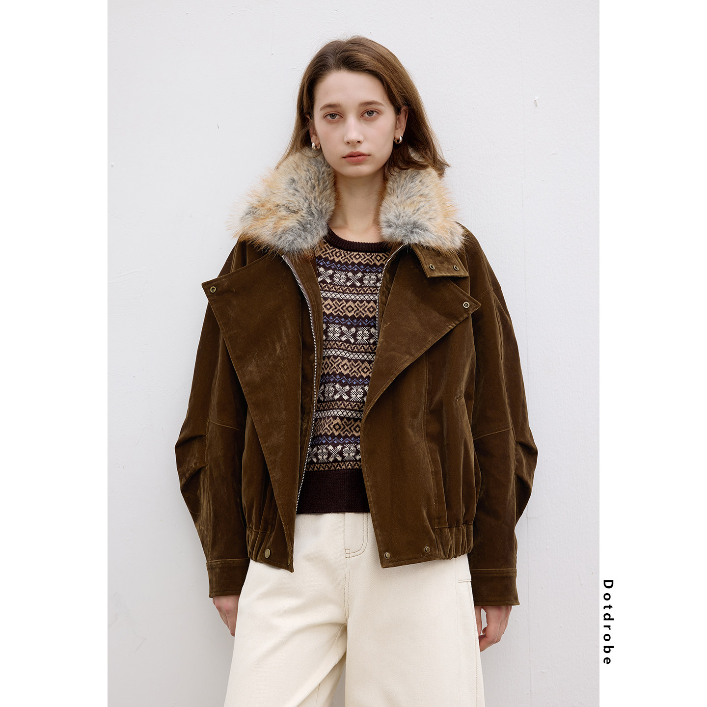棉服可穿三季 3M棉派克服女短款 毛领内胆均可拆卸 Dotdrobe多着