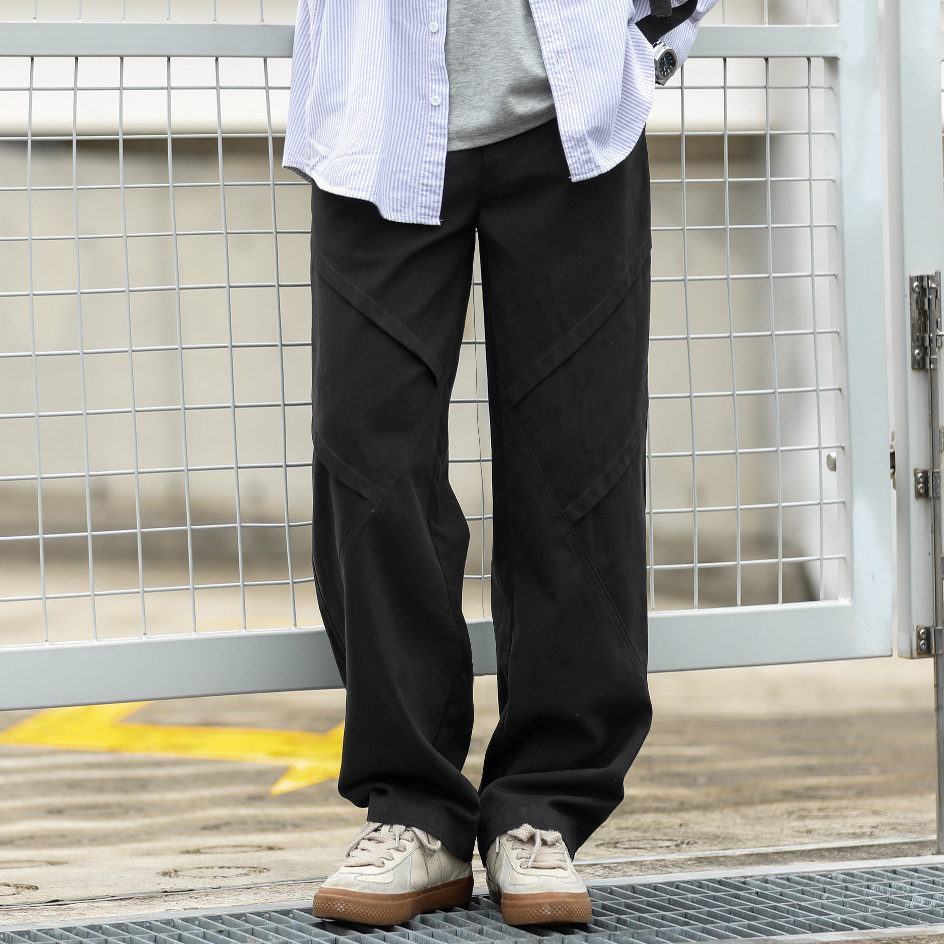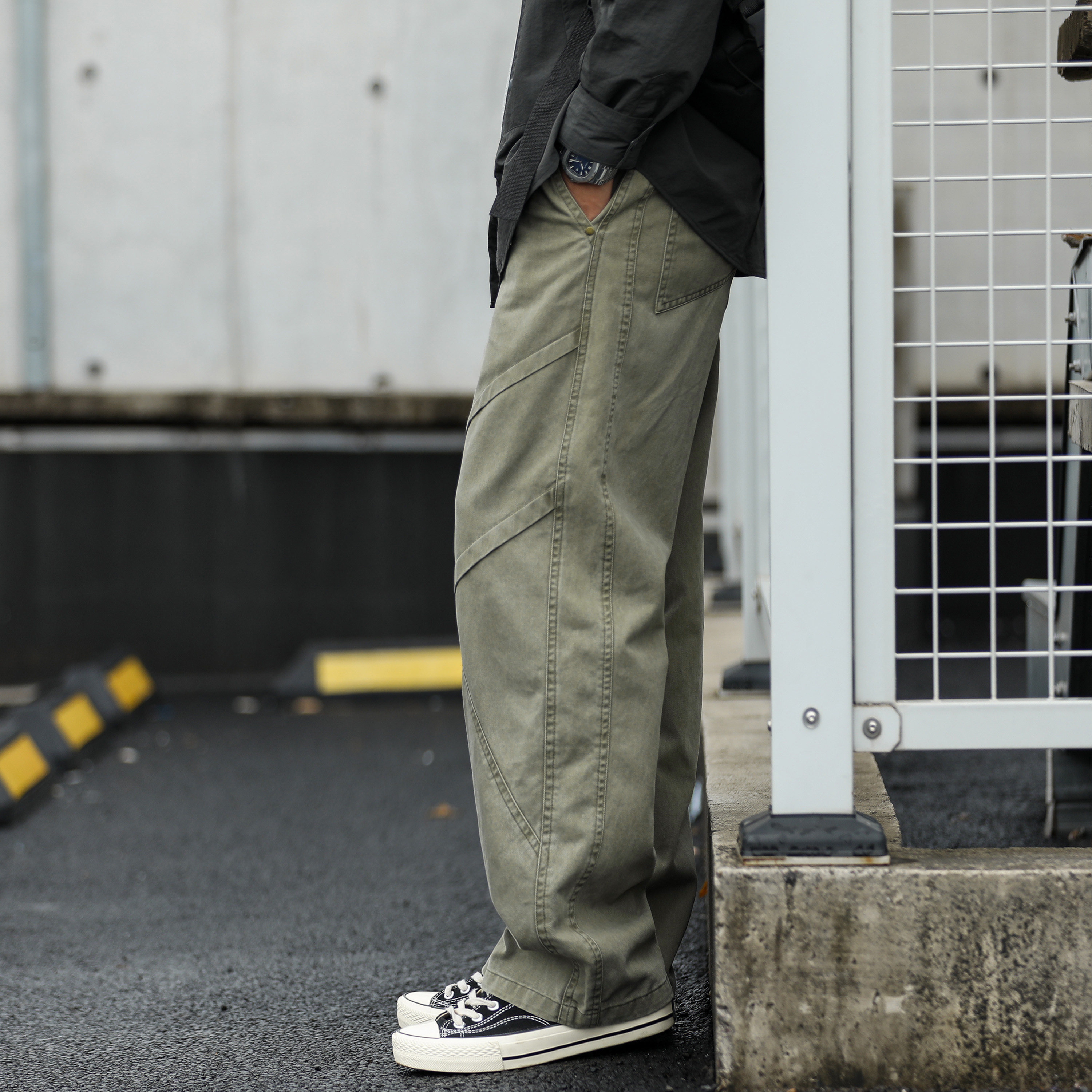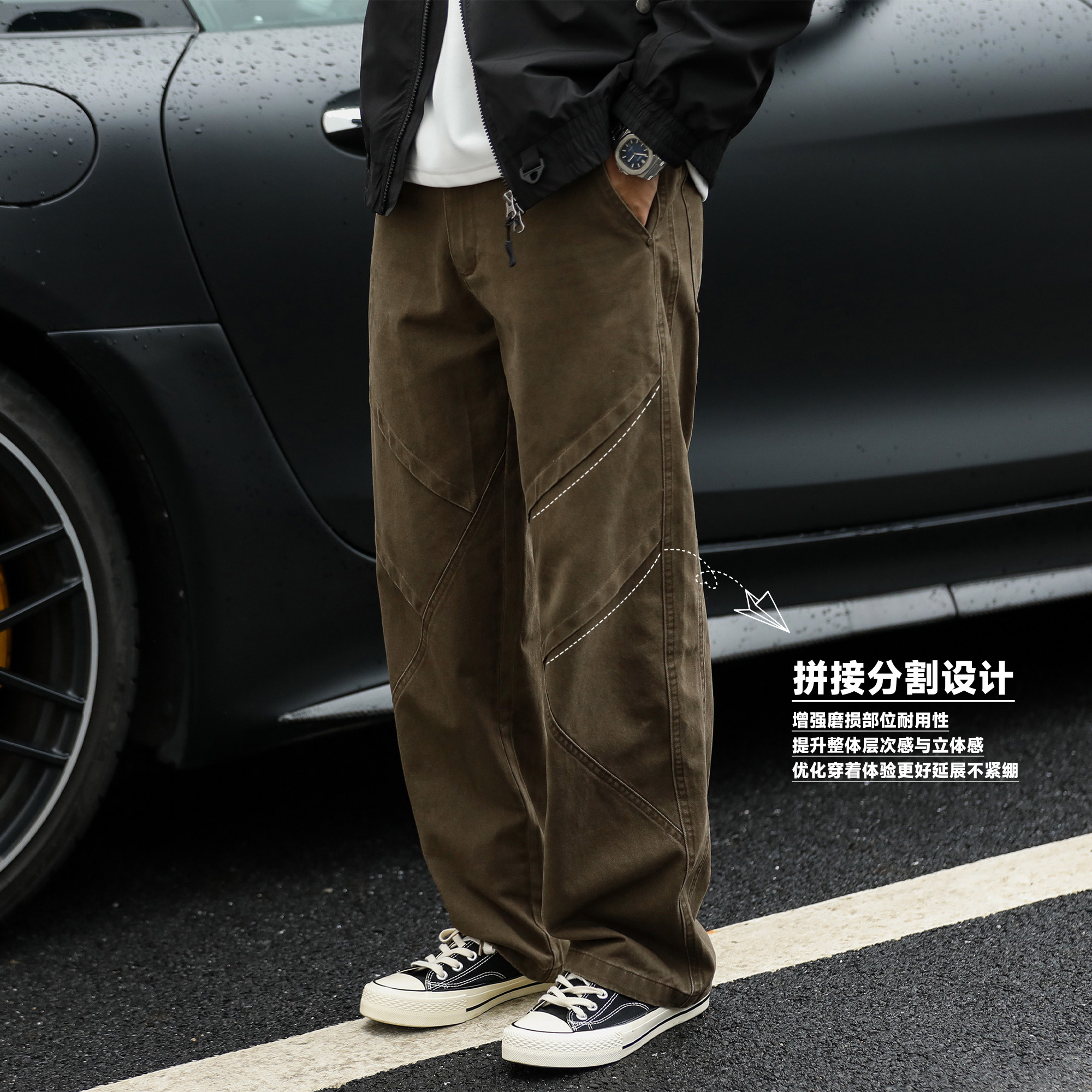 复古冬季 百搭直筒裤 男士 工装 水洗做旧分割拼接休闲裤 嘿马七作美式