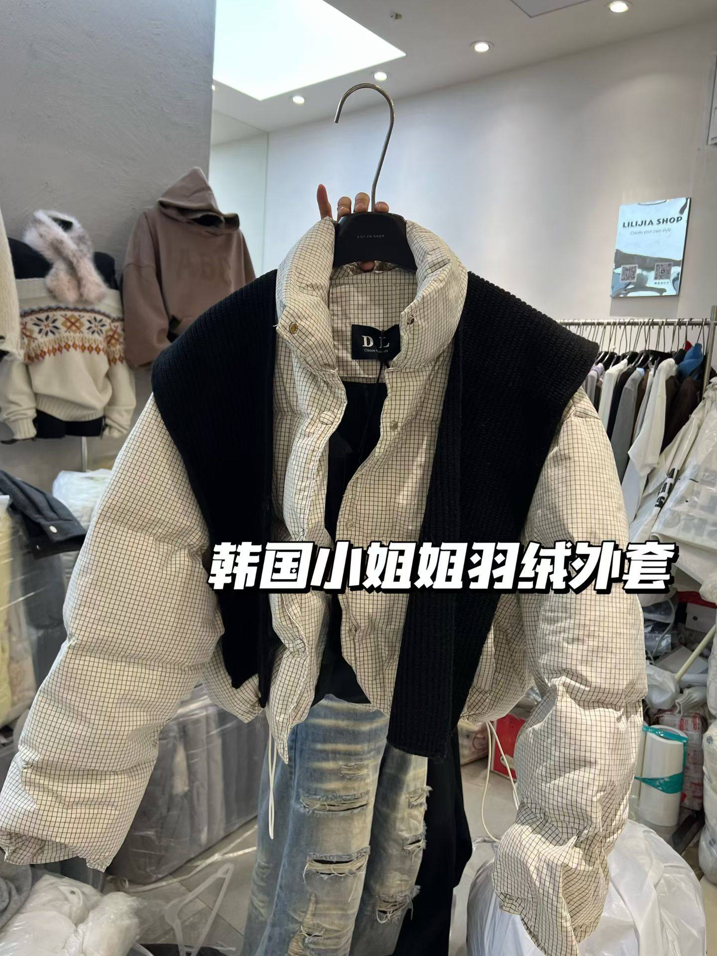 时尚 韩版 百搭宽松显瘦披肩格子羽绒服外套女 2025秋冬新款 Miss家