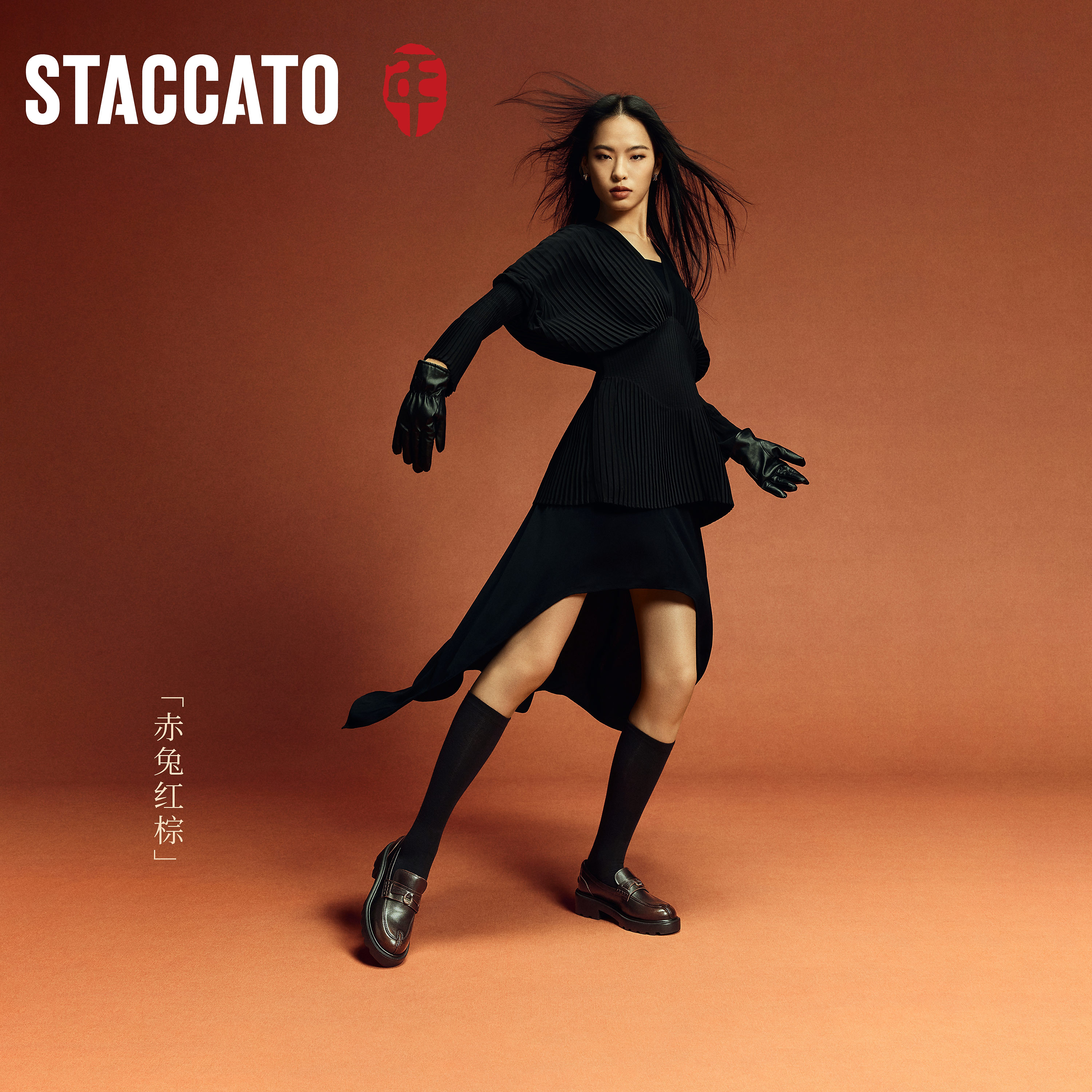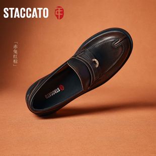 女EGB61AA6 英伦风厚底一脚蹬小皮鞋 思加图2026新款 幸运马蹄乐福鞋