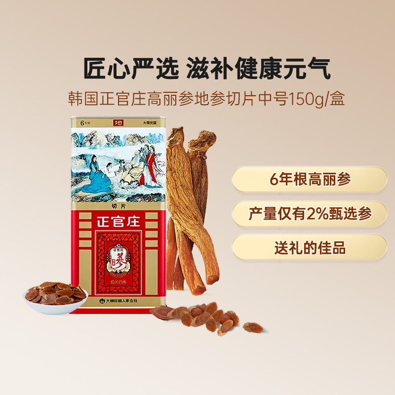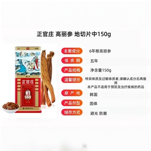 正官庄6年根高丽参地参切片中号150g补气血滋补礼盒送礼 自营