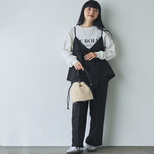 套装 日单品牌秋季 麻调可调节系带吊带松紧腰休闲裤 时尚 31431 新款
