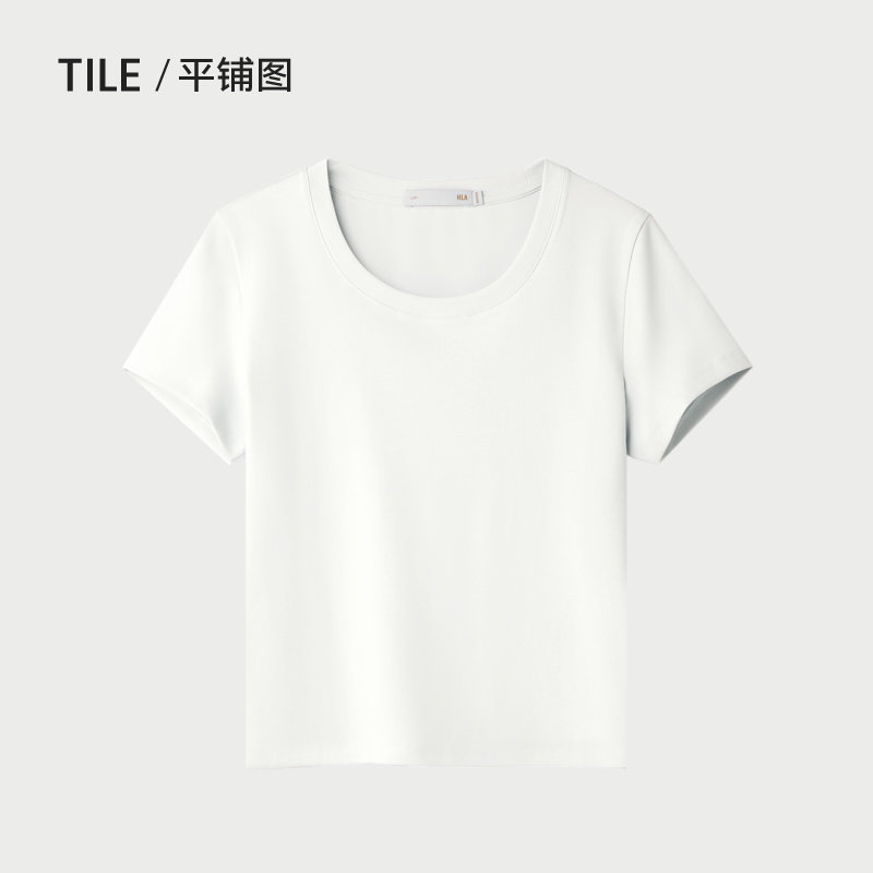 白色短t女装 HLA 基础款 T恤春夏新圆领时尚 海澜之家棉氨弹力短袖