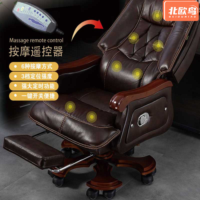 北欧鸟老板椅豪华真皮电脑椅牛皮实木办公室大班椅高档进口品质