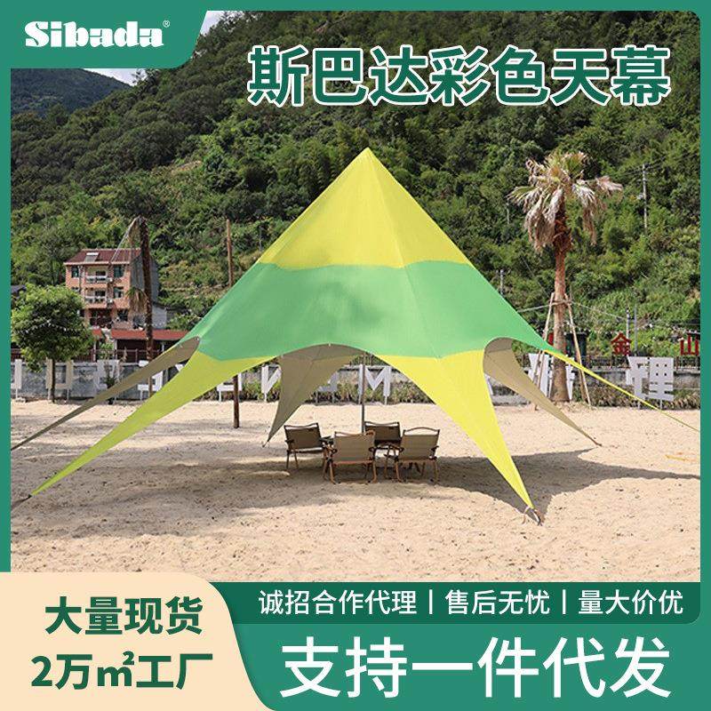 加厚黑胶天幕户外露营野餐庭院沙滩防雨防晒遮阳棚牛津布帐篷便携