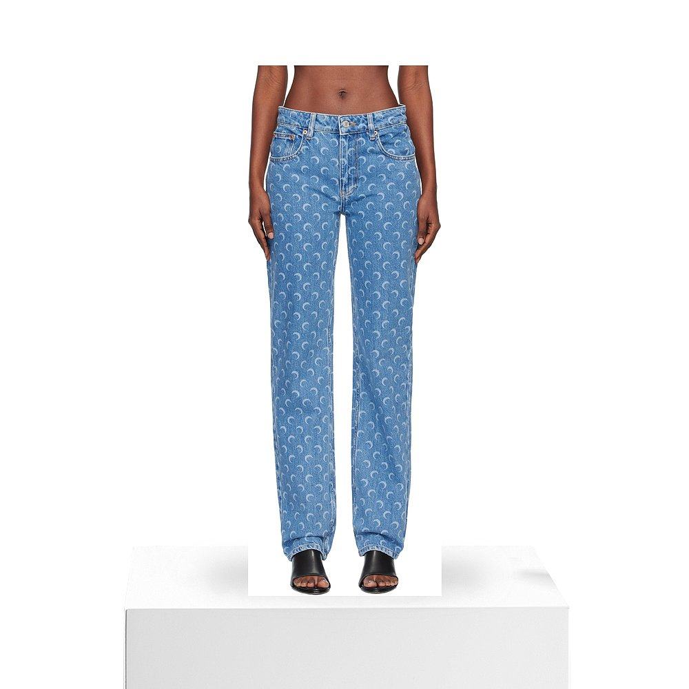 马登美式 女士秋 莱赛尔丹宁蓝原色中腰宽松直筒阔腿拖地卷边牛仔裤