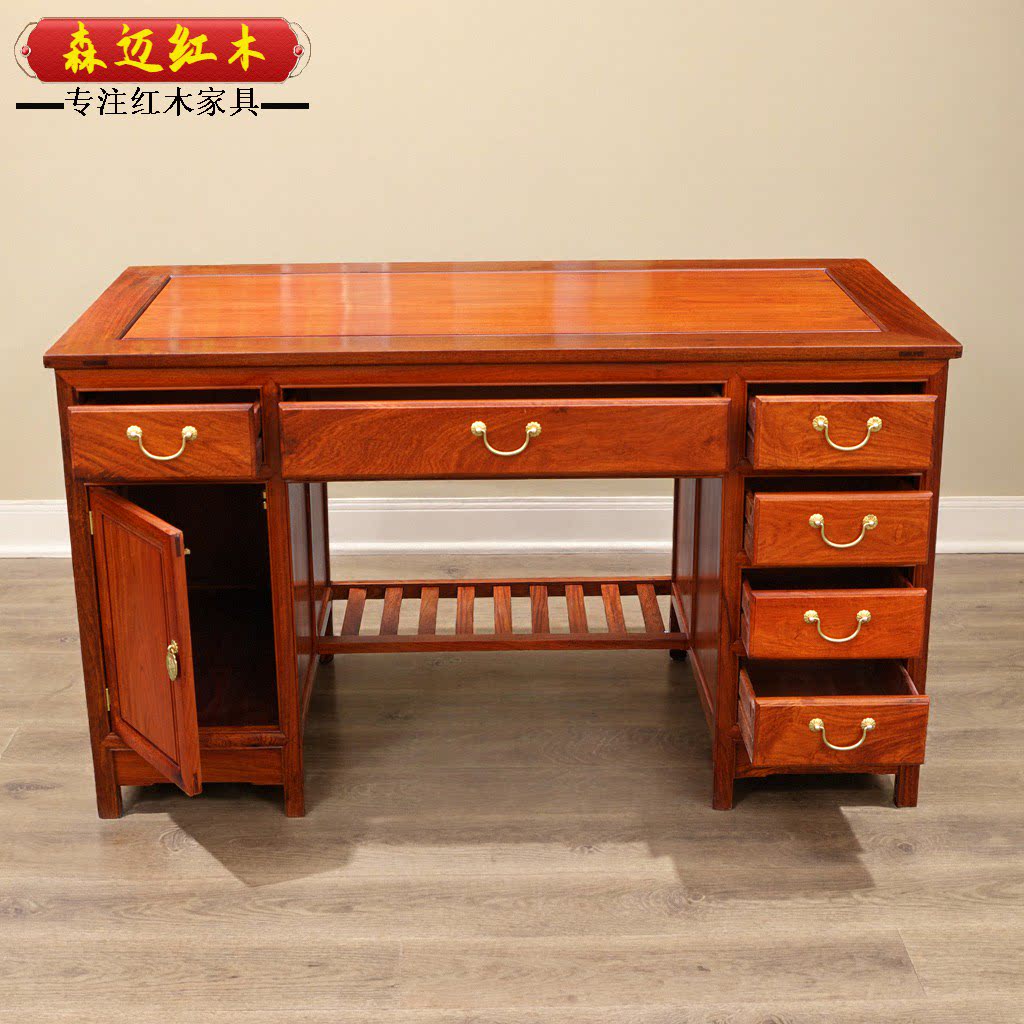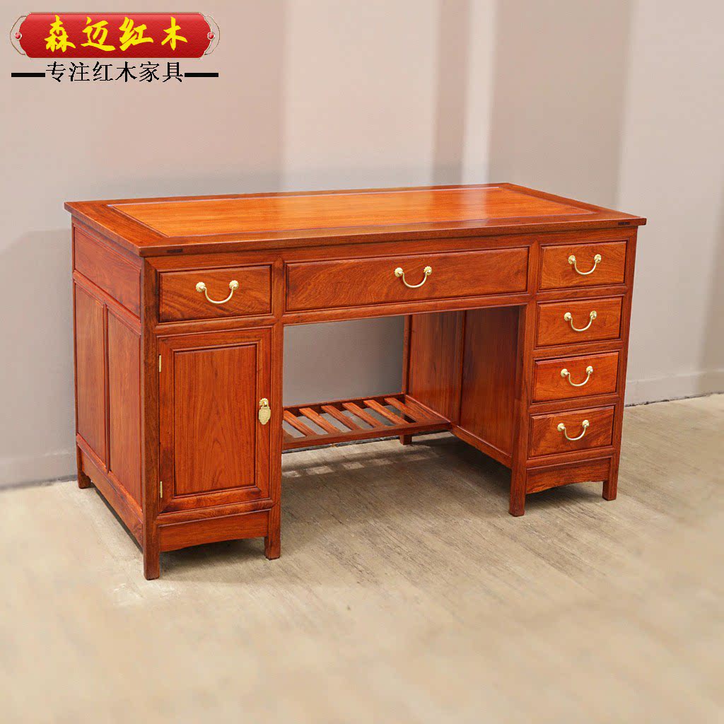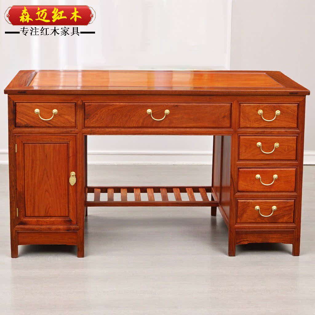 缅甸花梨办公桌电脑桌加厚独板大果紫檀全榫卯结构古典家具耐用