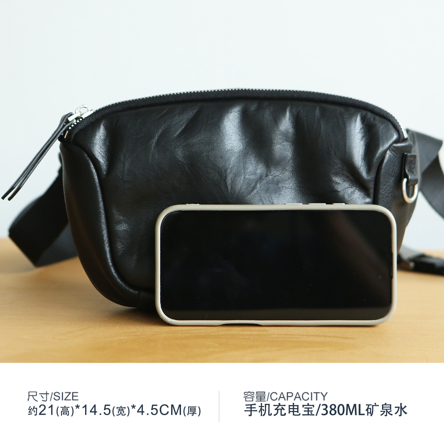 LANSPACE头层牛皮小胸包男式 小方包 真皮小包包休闲手机包简洁款