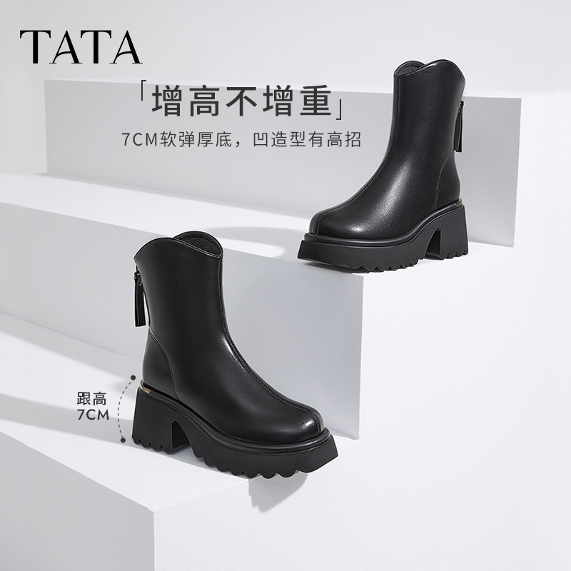 靴女瘦瘦短靴弹力靴CEG07DZ5 加绒时装 TATA他她喵爪靴2025冬季 新款