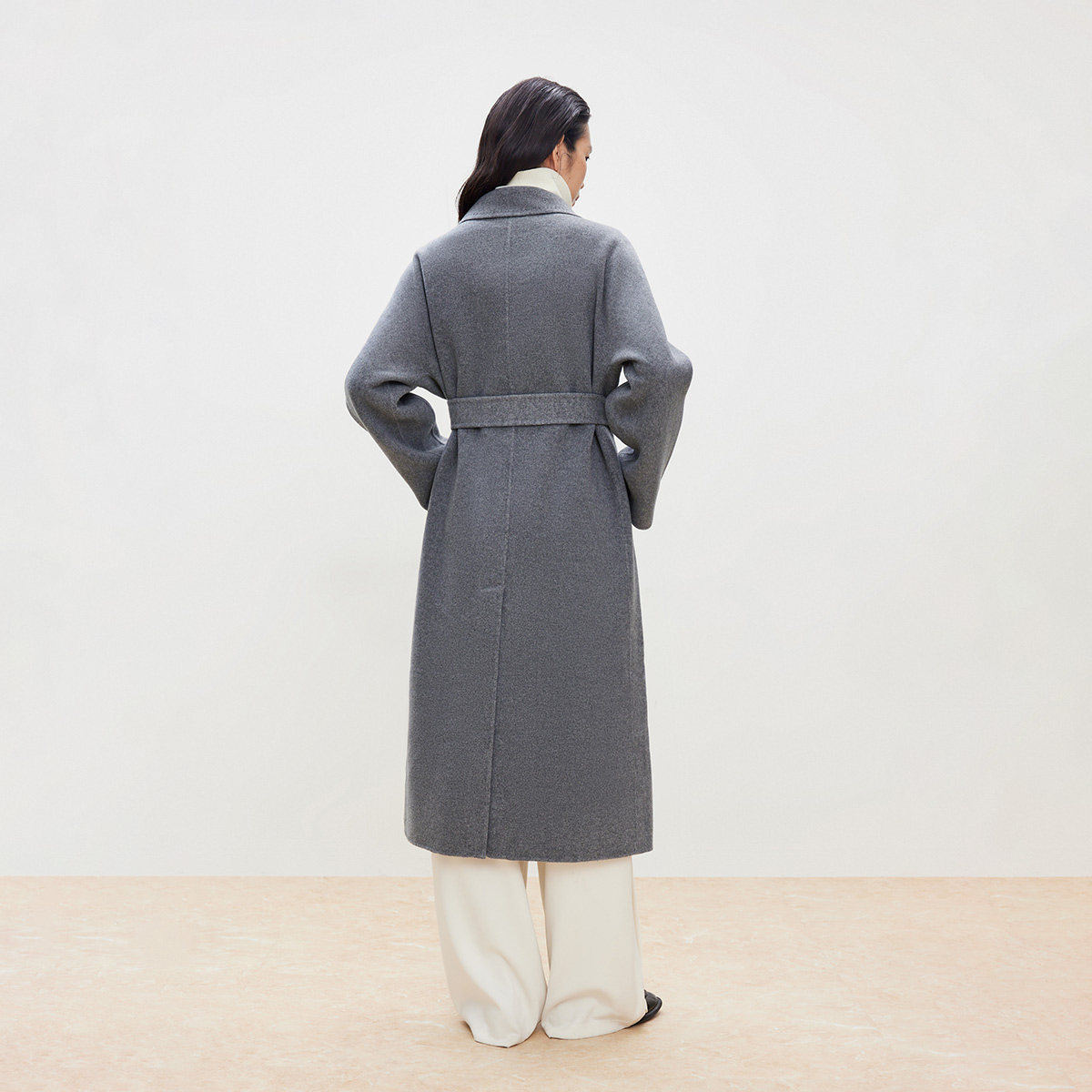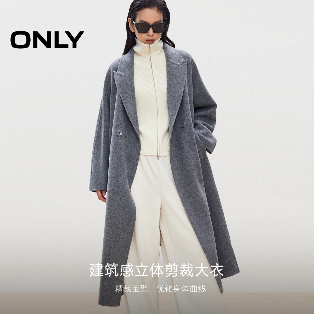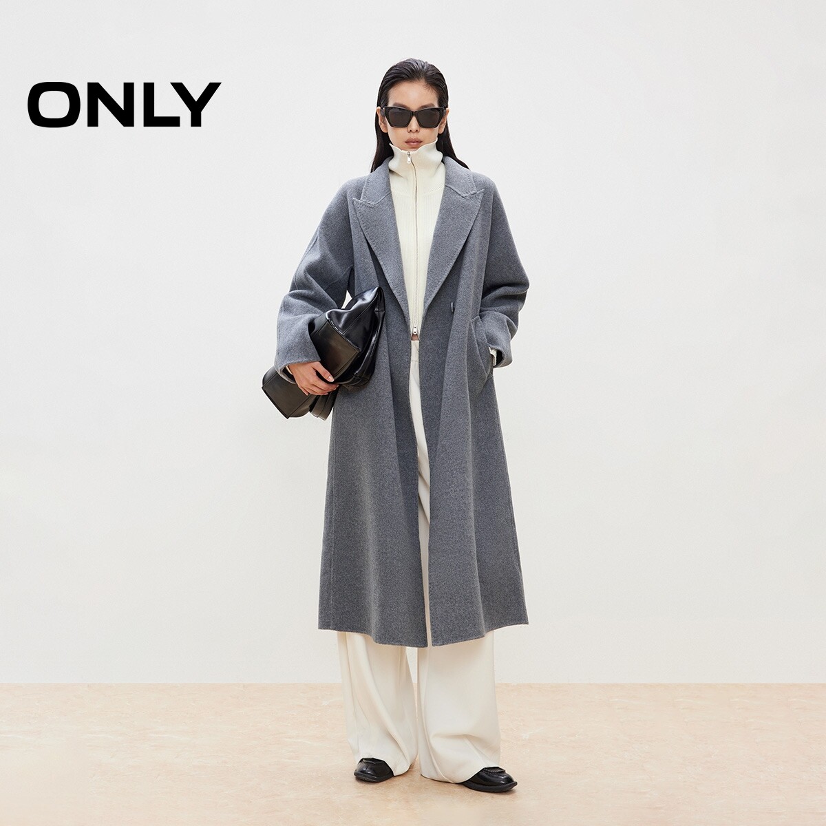 绫致ONLY秋季 双面呢含绵羊毛翻领纯色毛呢大衣女 新款