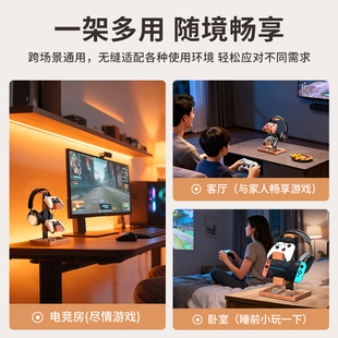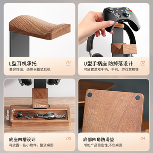 埃普桌面耳机支架实木手柄耳机支架二合一电竞游戏头戴式 架子耳挂托架挂架多功能收纳木质展示架