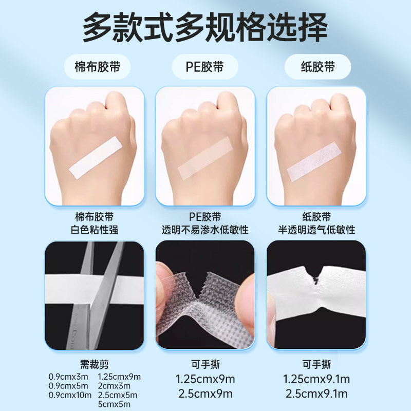 医用胶布压敏胶带pe胶卷可手撕固定双眼皮贴透明透气防过敏防水贴