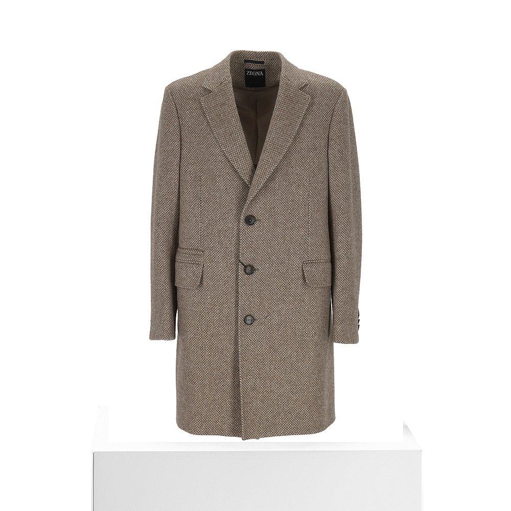 西装 过膝双面羊绒外套 领毛呢子风衣 中长款 纯羊毛双面呢大衣男士