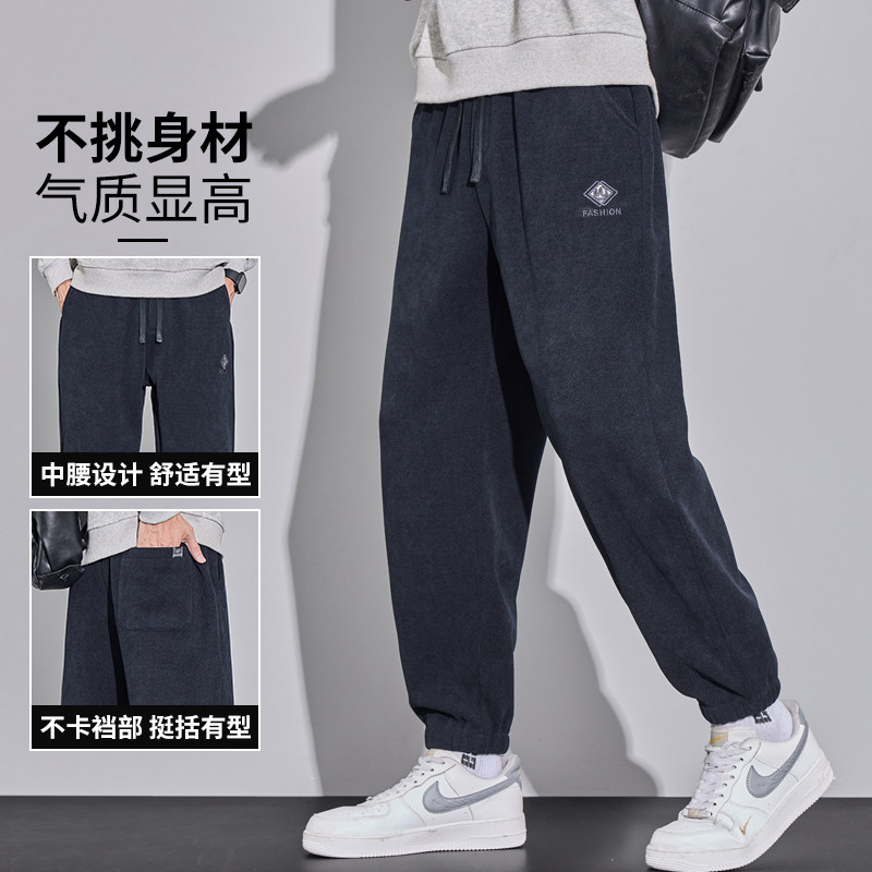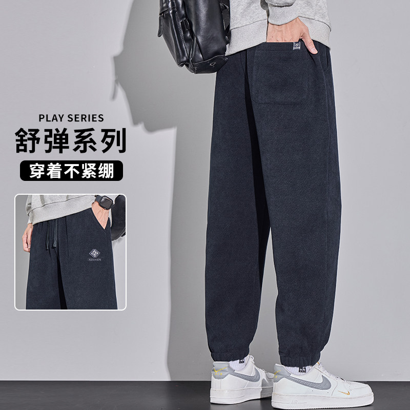 男士 灯芯绒卫裤 秋冬季 子厚款 宽松束脚运动裤 罗蒙雪尼尔加绒休闲裤