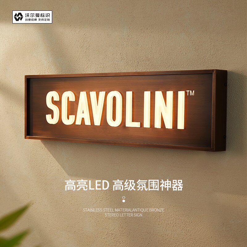 门头招牌古铜色不锈钢灯箱立体字灯牌广告牌民宿挂墙式 led发光