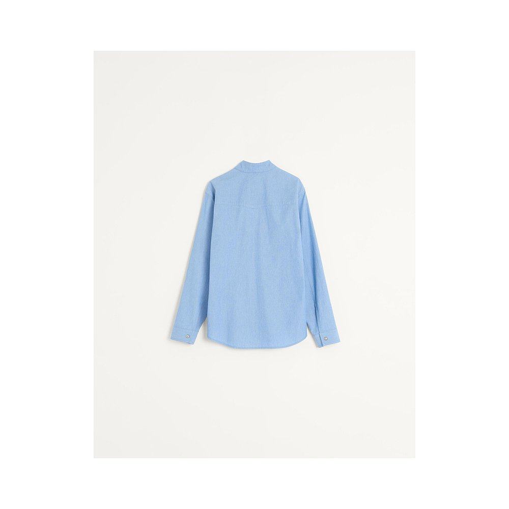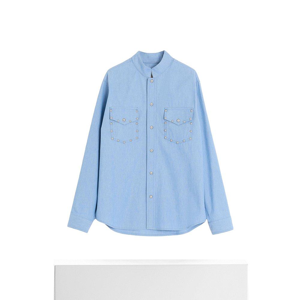 双色水洗磨毛长袖 几立 牛仔衬衫 夕阳倒映在蓝色天际
