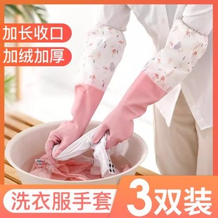 冬天洗碗手套加绒加厚保暖款 男女厨房耐用橡胶洗衣服加长家务手套