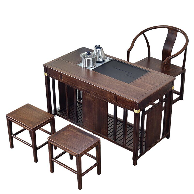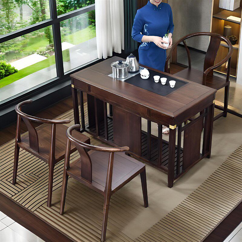 黑胡桃木阳台茶桌椅组合家用小型休闲茶台禅意实木新中式 喝茶茶几