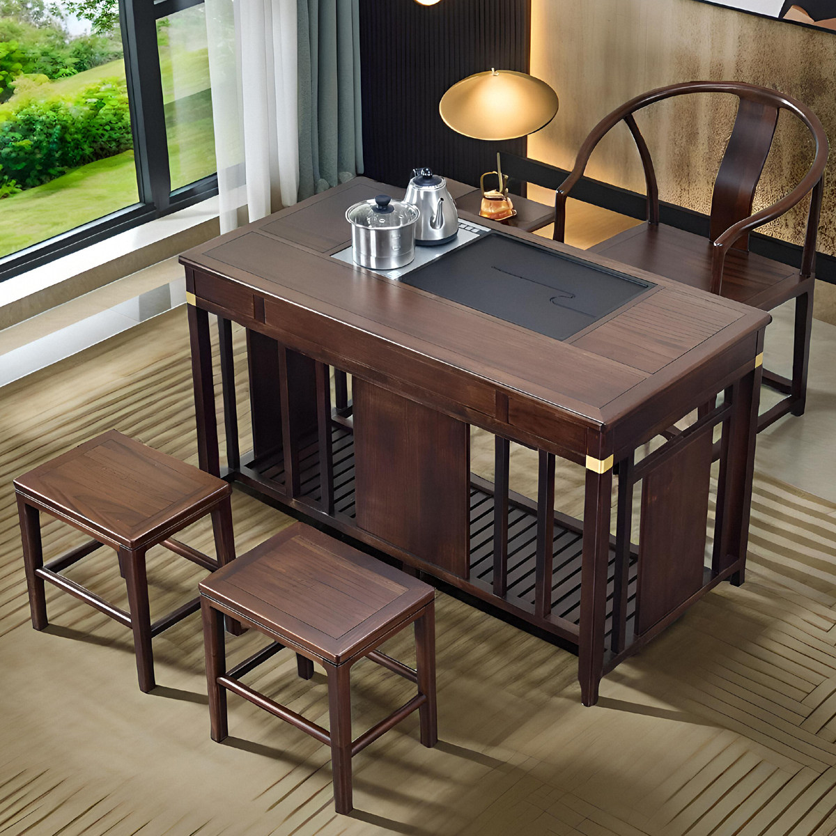 茶桌2025新款 高端岩板茶桌椅组合办公室家用茶台泡茶桌烧水壶一体