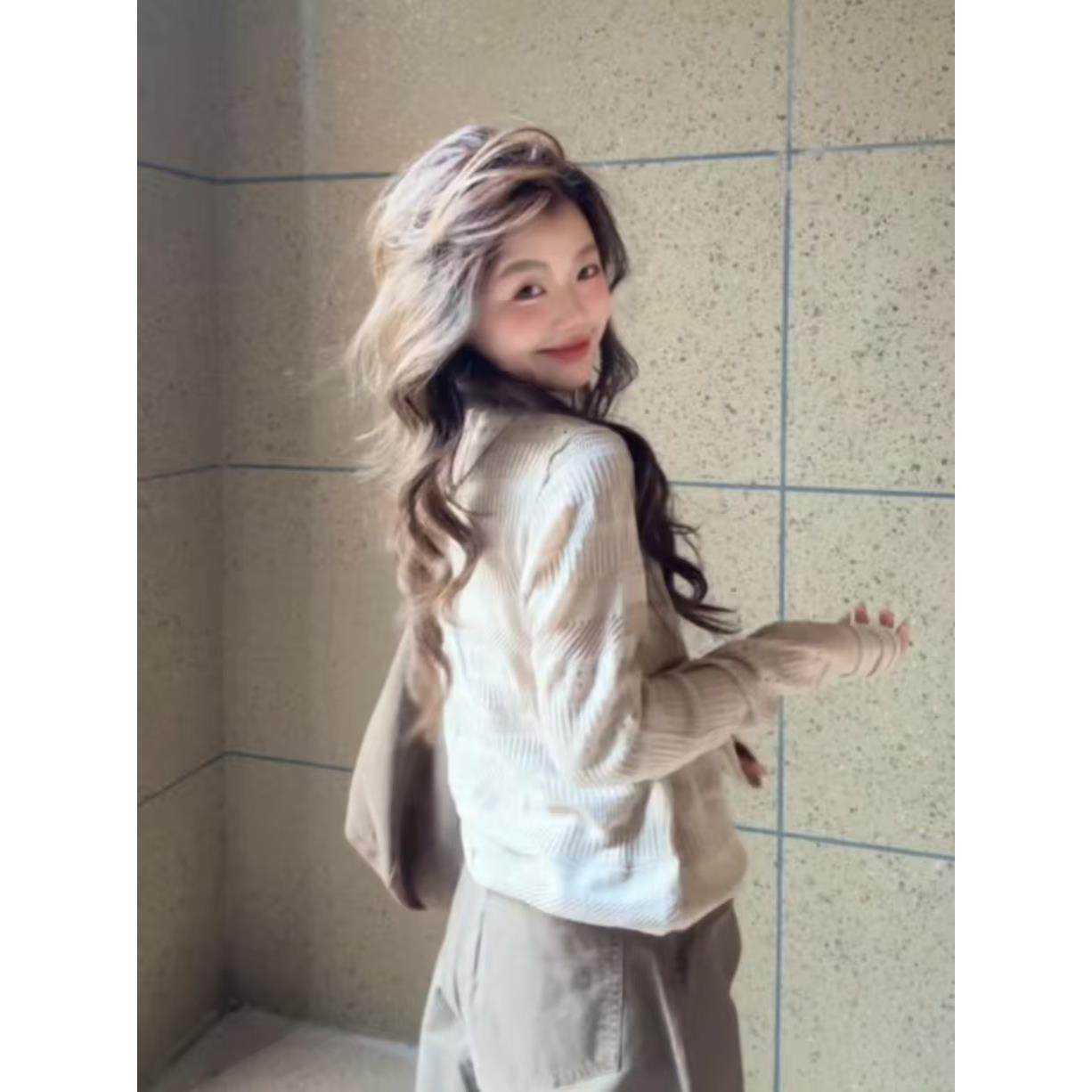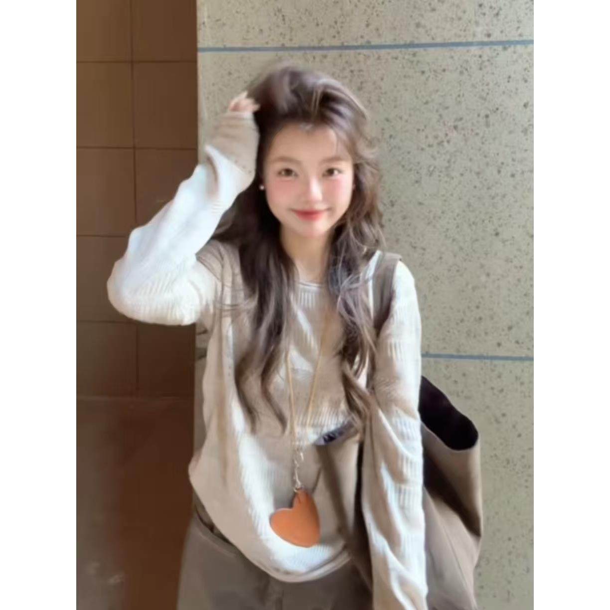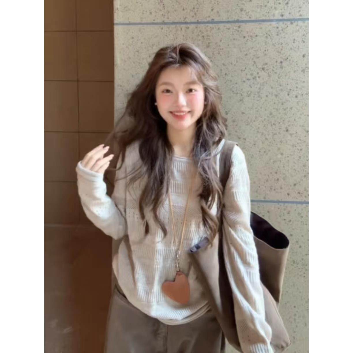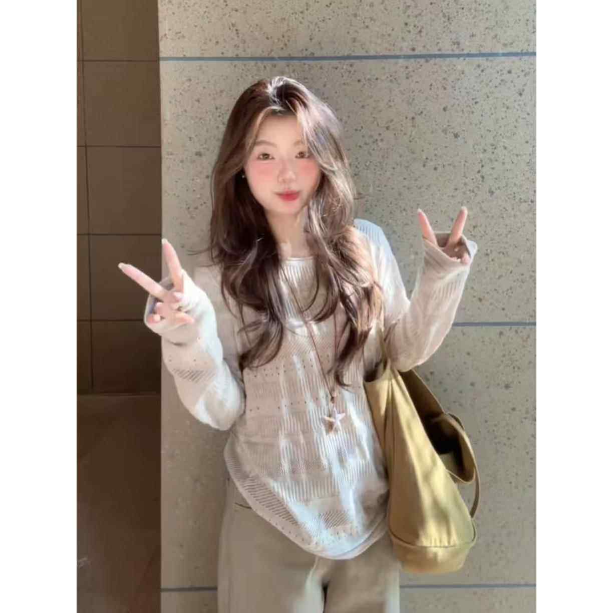 大气镂空钩针女式 慵懒高端 长袖 初秋 宽松贴身衬 针织上衣 韩式