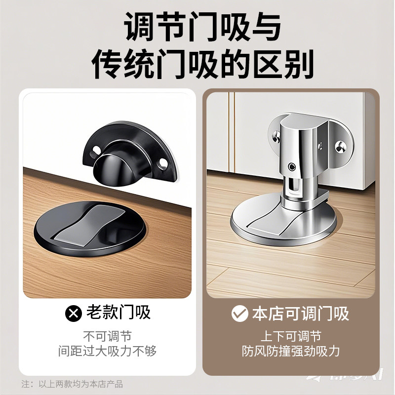 新款 门吸免打孔阻防撞地吸硅胶门碰防撞垫吸盘门顶阻卫生间门挡器