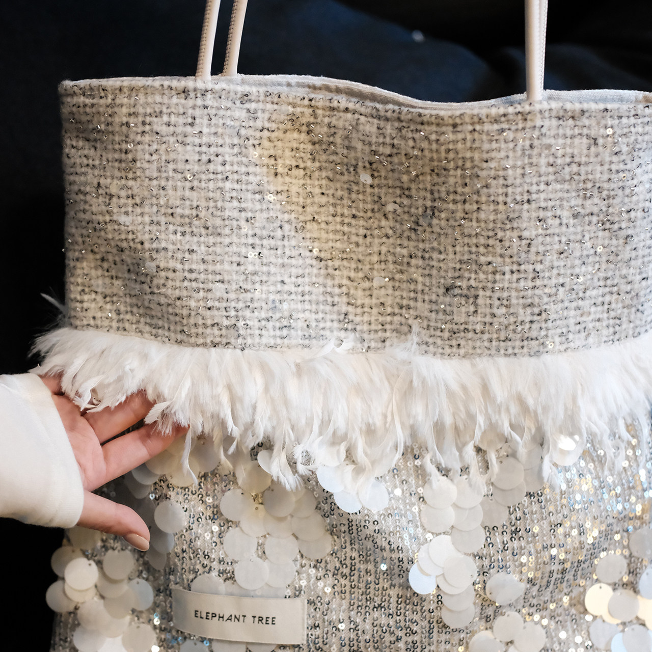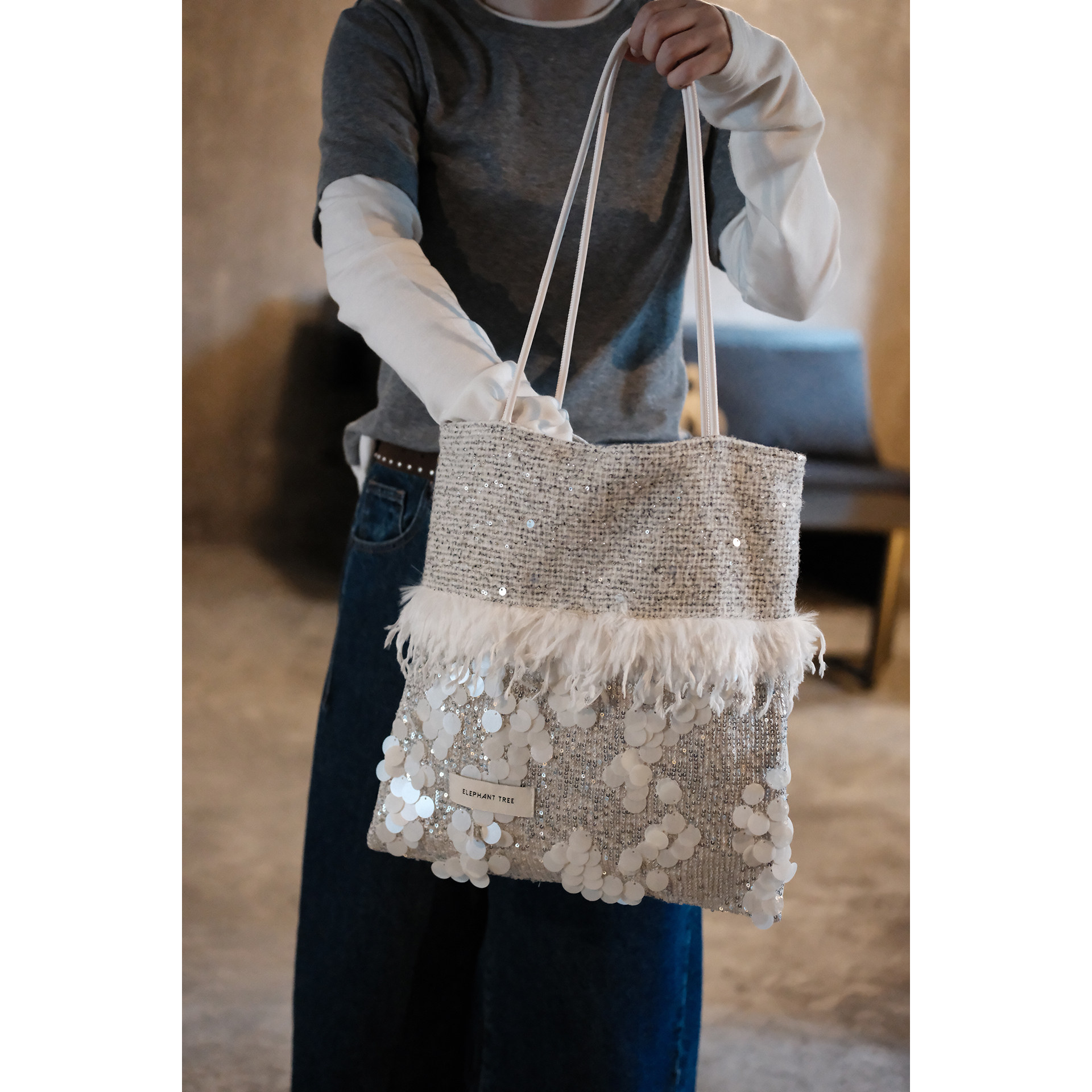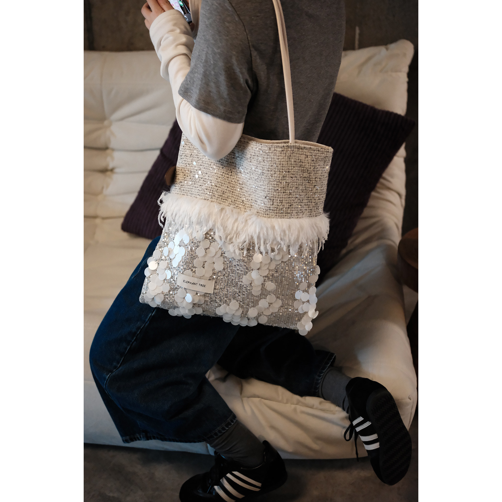通勤亮片香风单肩包大容量包包托特包白色高级小众设计轻奢帆布包