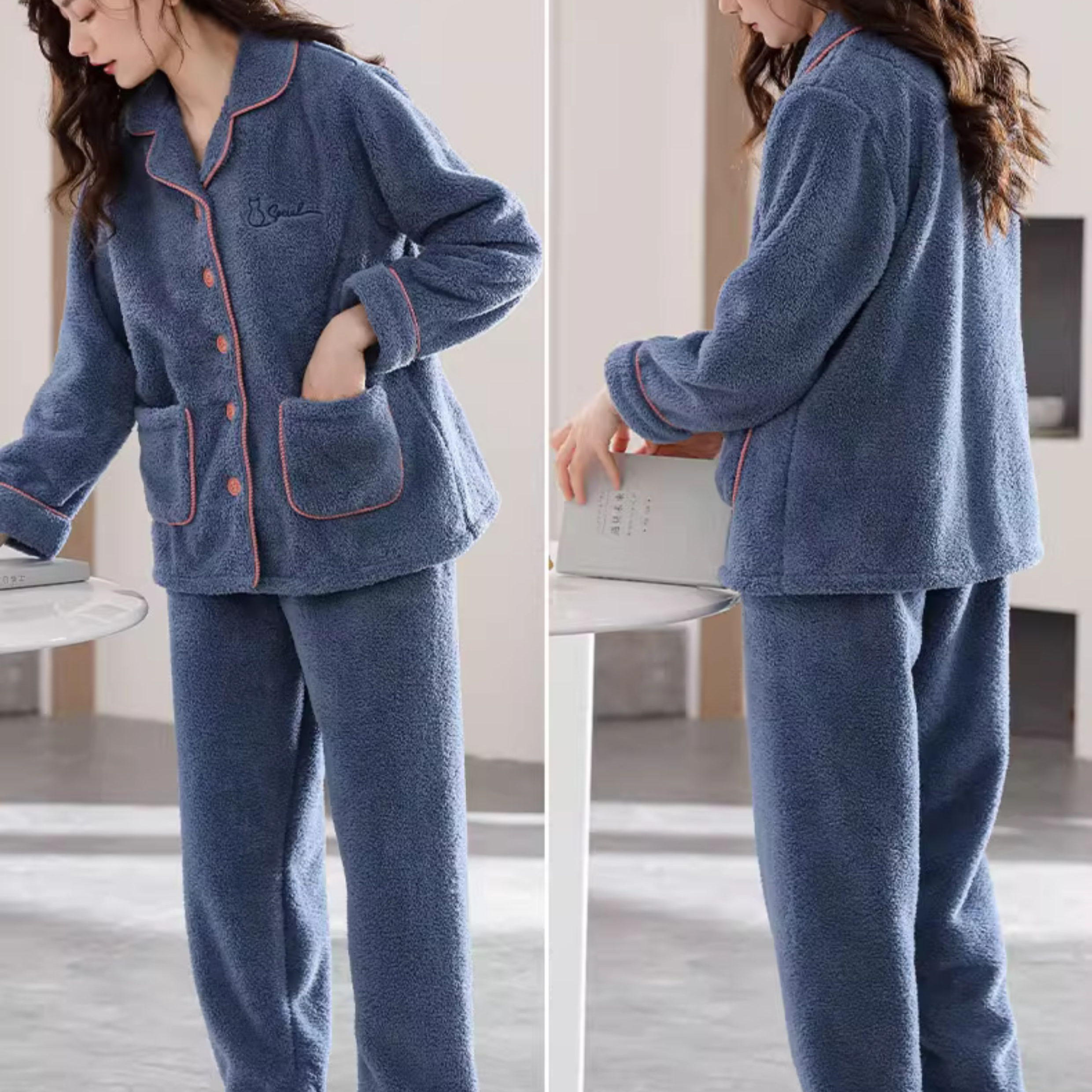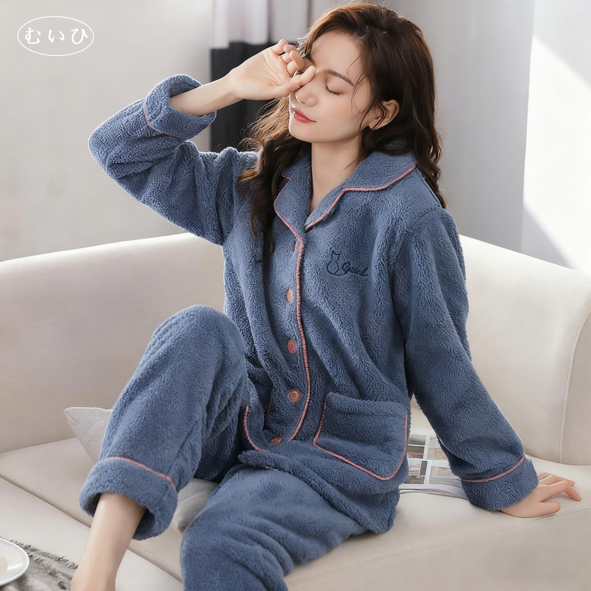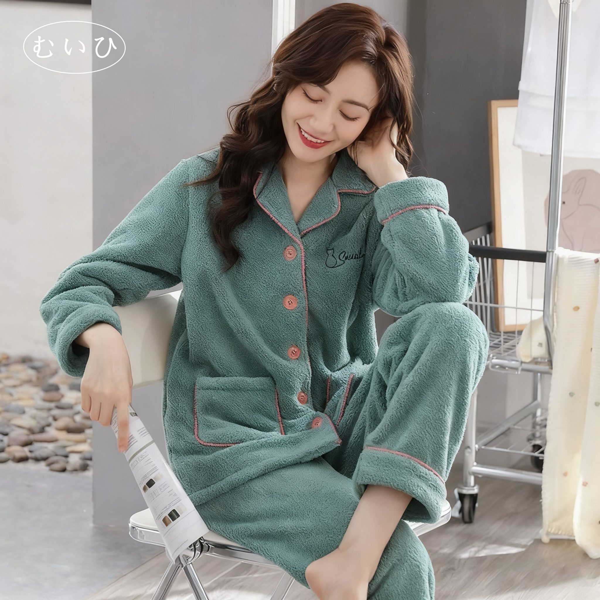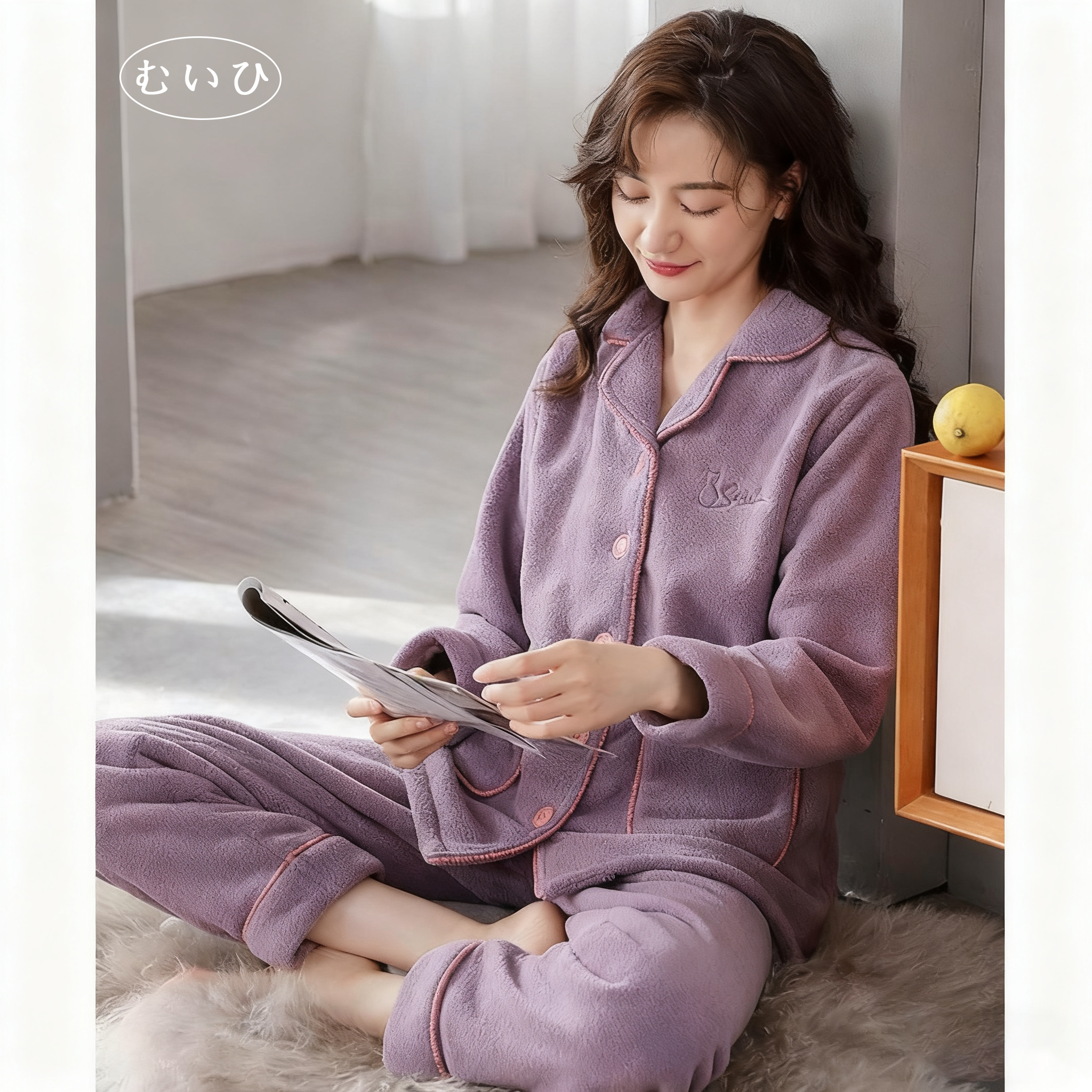 珊瑚绒加厚加绒大码 法兰绒睡衣女秋冬款 家居服 日本むいひ轻奢